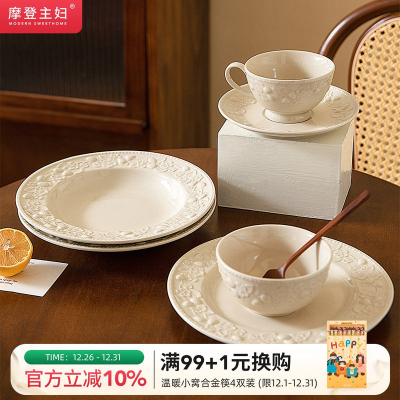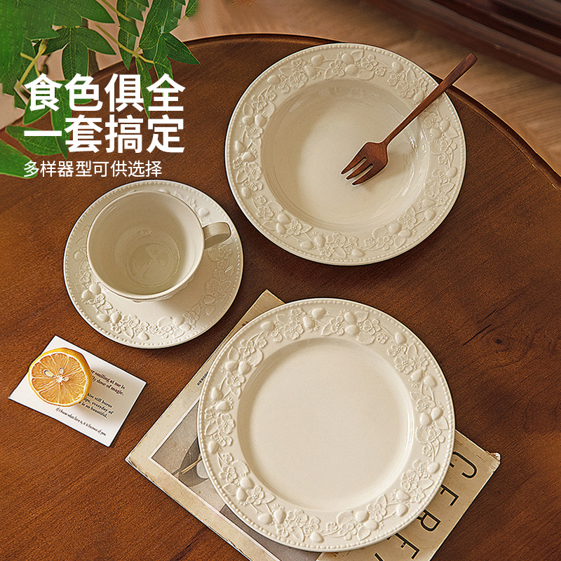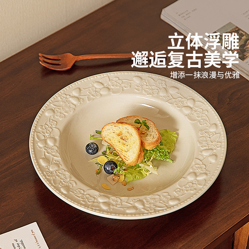 摩登主妇浮雕餐具盘子家用菜盘2026新款高颜值草帽盘鱼盘法式餐盘