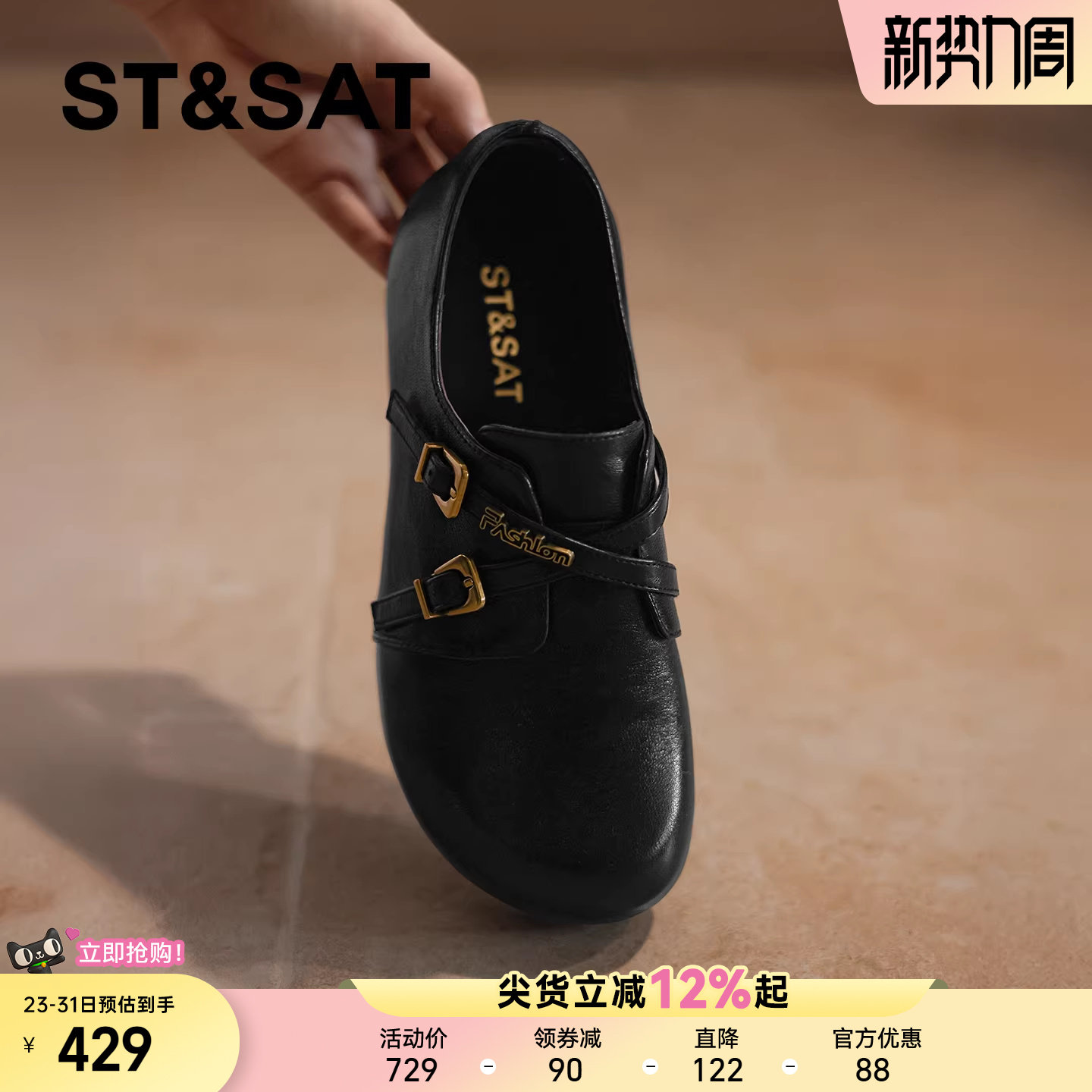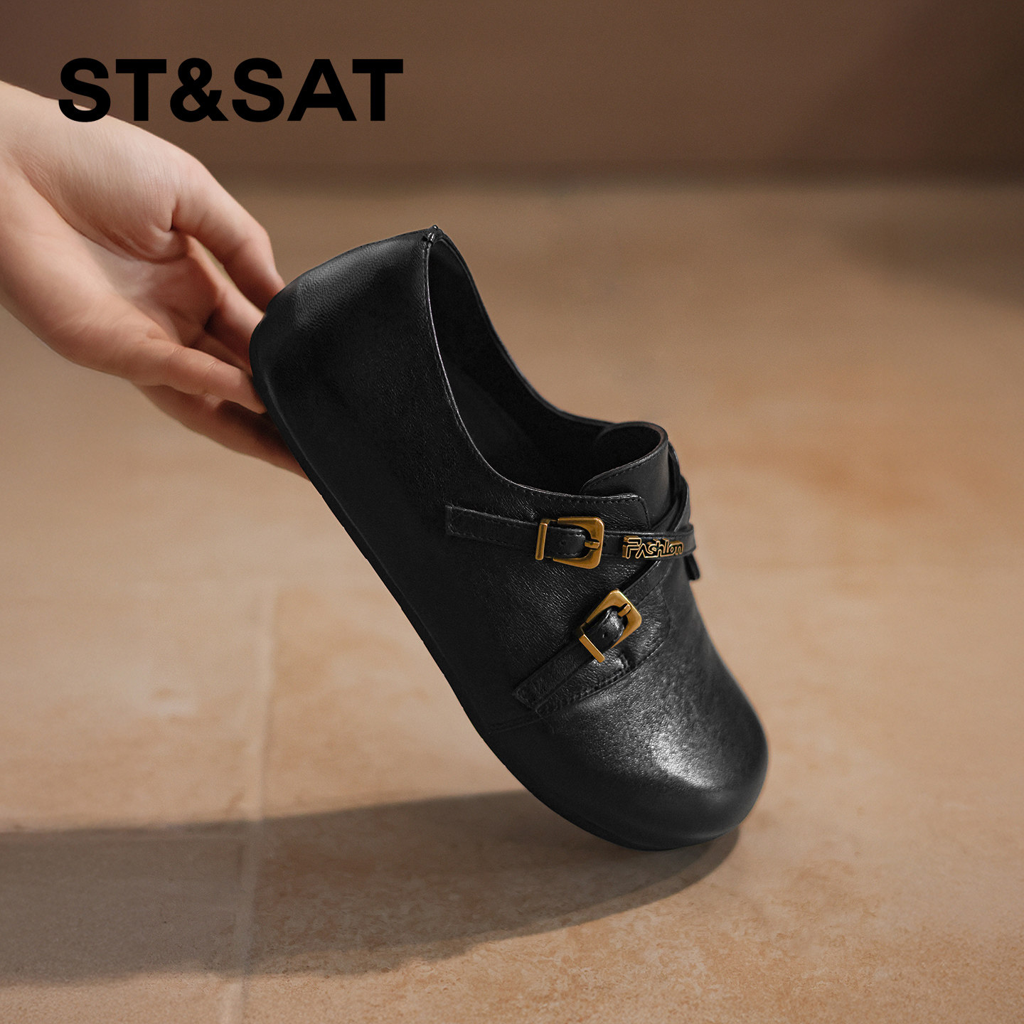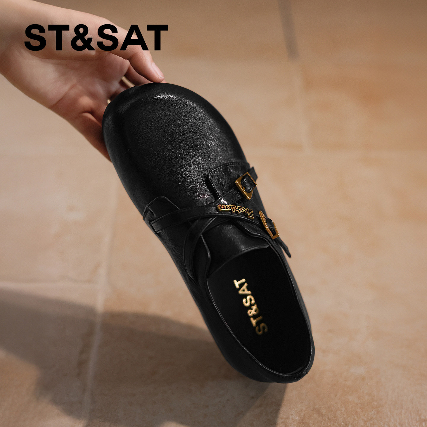 星期六真皮休闲舒适单鞋女2025年春季新款平底轻便包头浅口乐福鞋