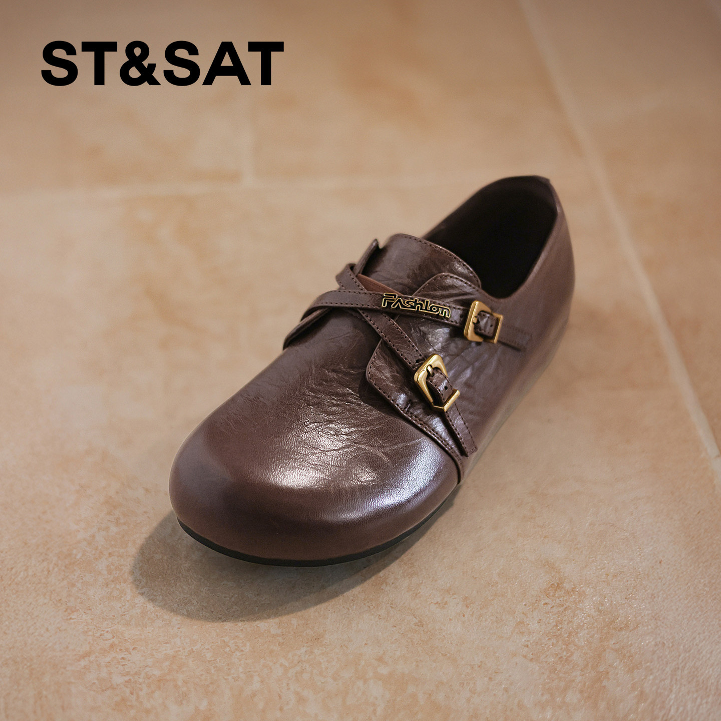 小桃同款真美诗自由之歌秋季新款水洗牛皮棕色复古小皮鞋乐福鞋女