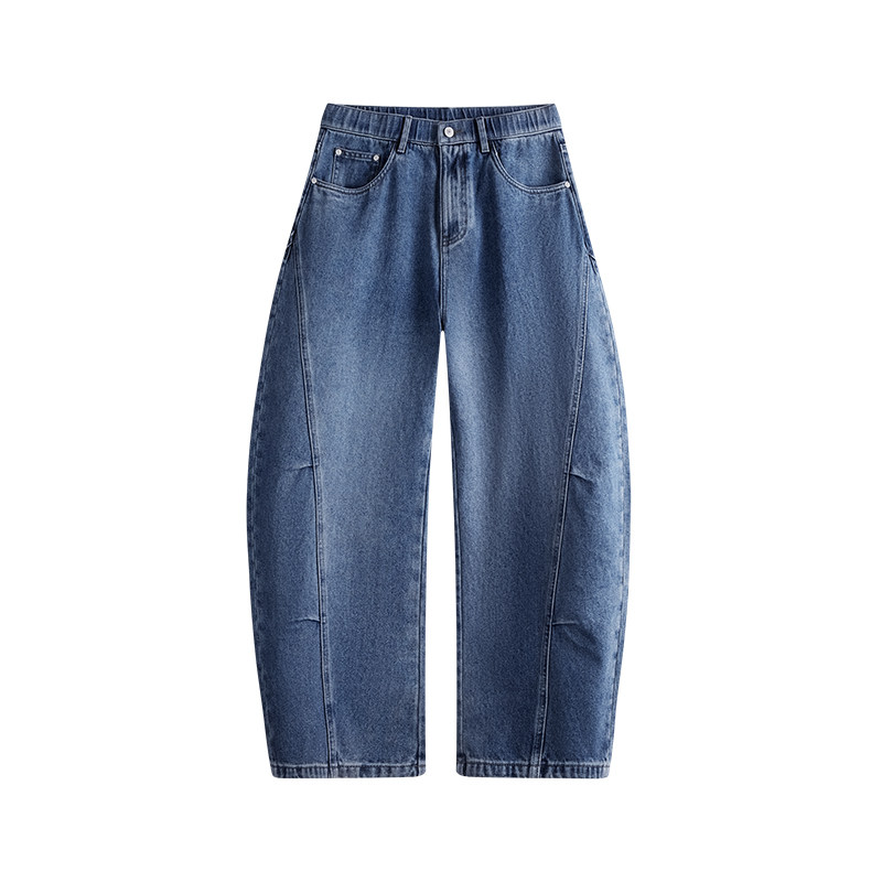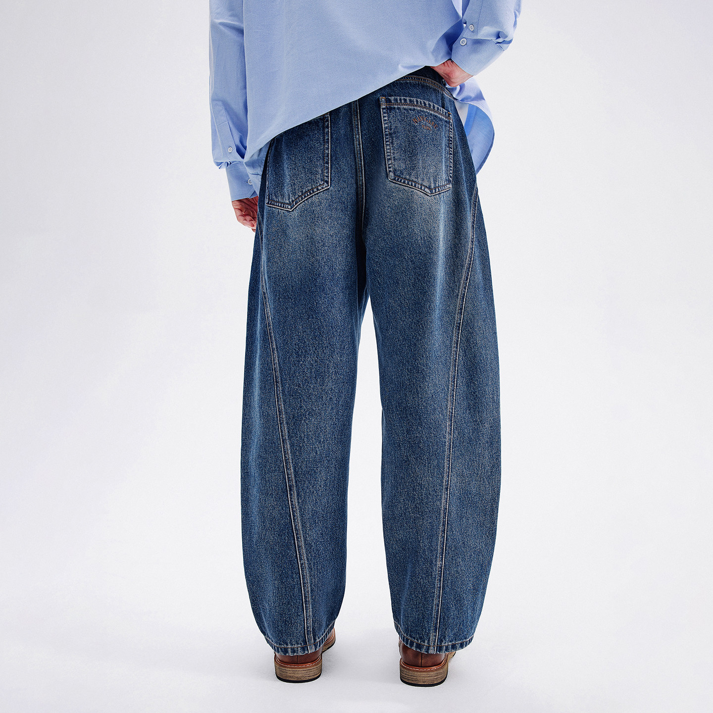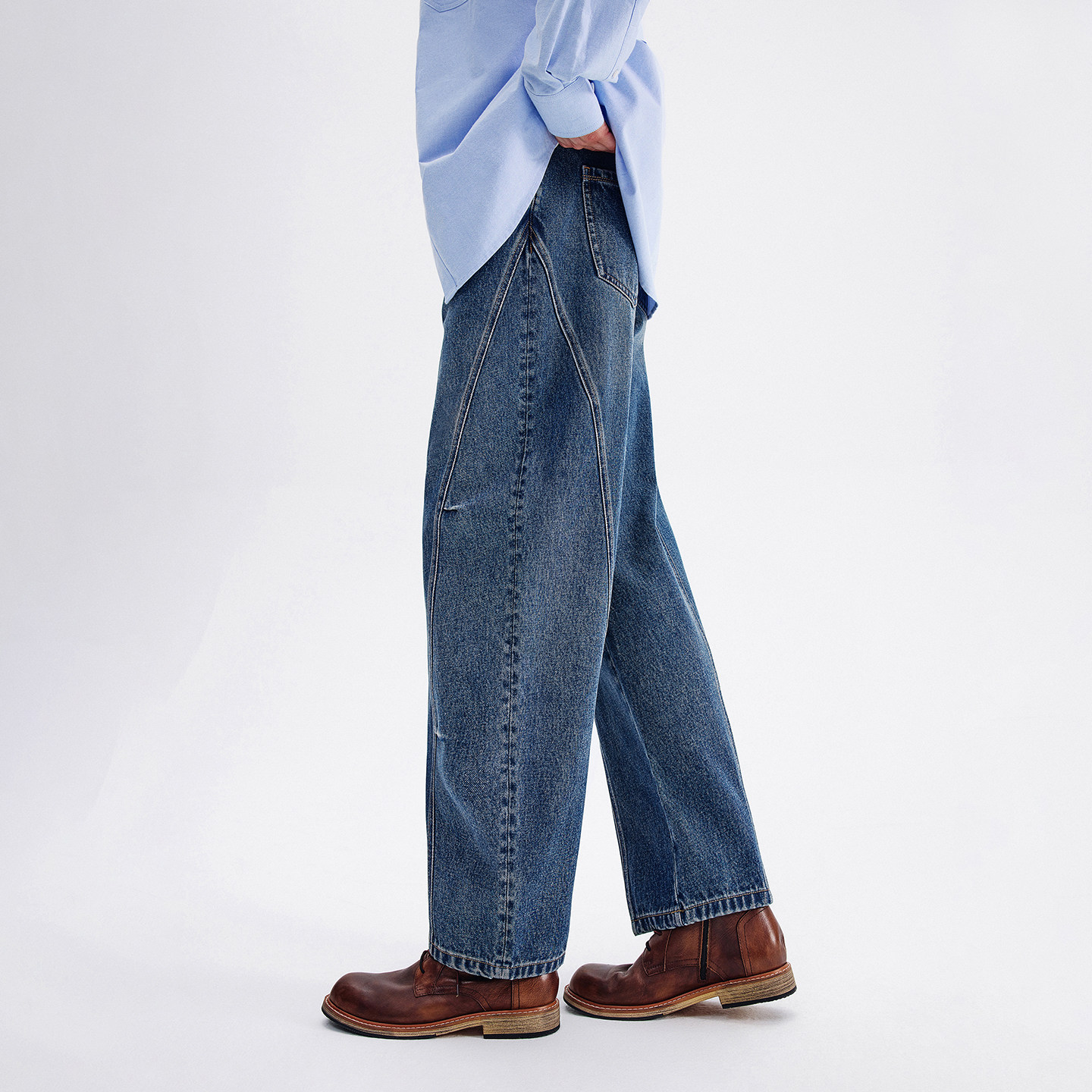 王安宇同款森马牛仔裤男做旧复古阔感弯刀裤宽松弧形裤2025冬新款
