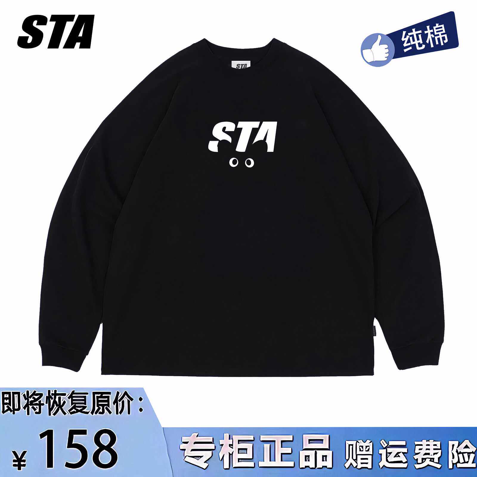 STA旗舰店猫咪眼睛印花长袖男女秋季美式潮牌重磅宽松黑色卫衣