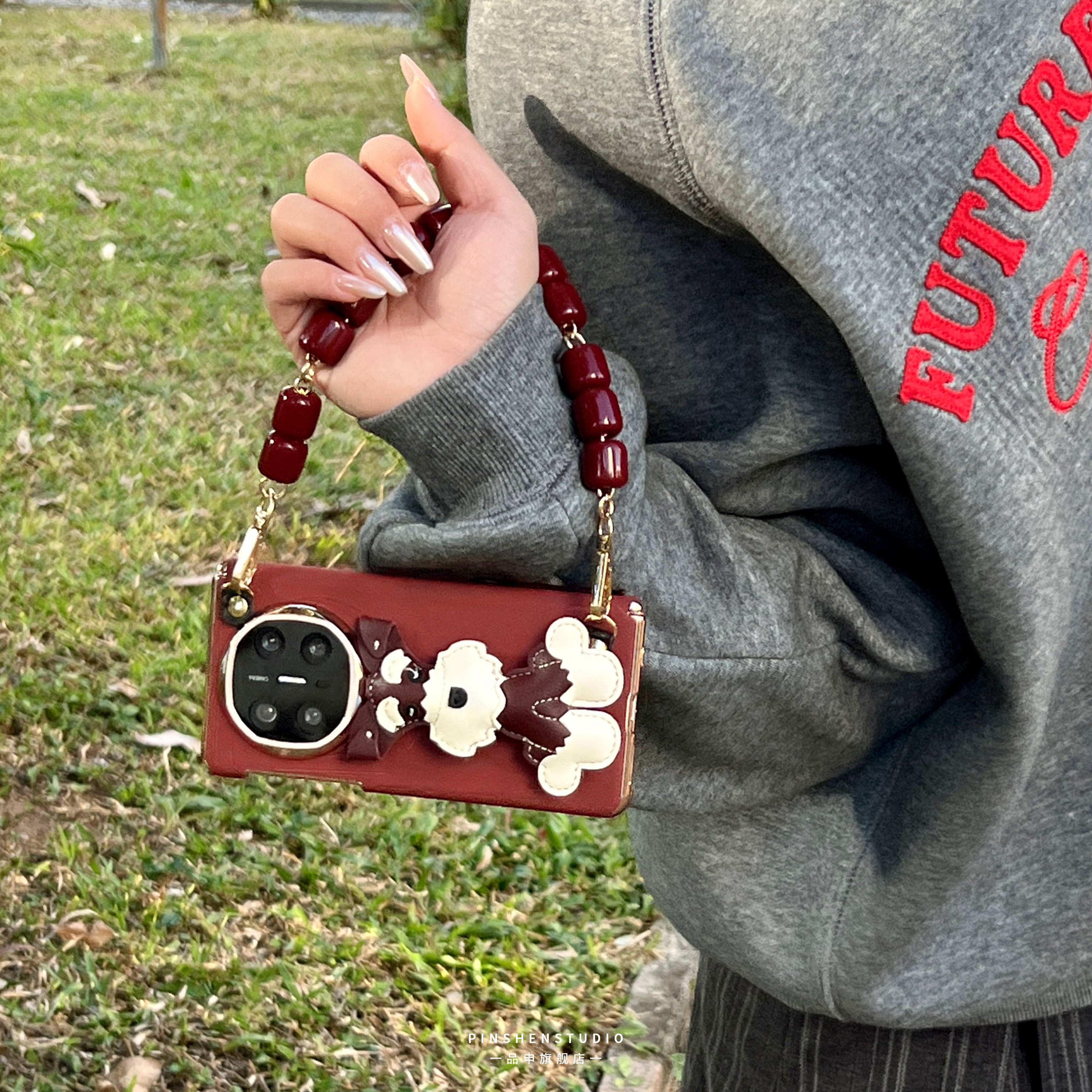 品申原创酒红色双中轴雪纳瑞小狗手提链条适用华为matex7手机壳全包防摔高级感新款华为matexT折叠屏保护壳