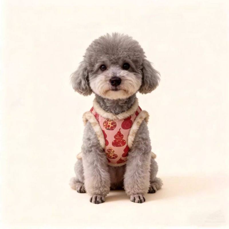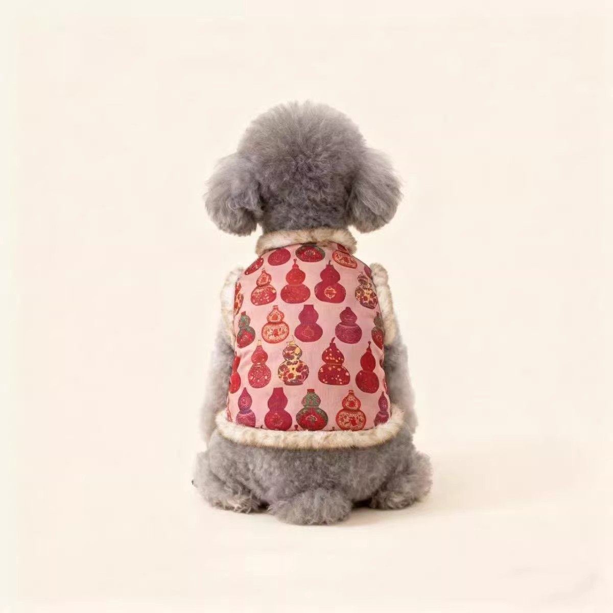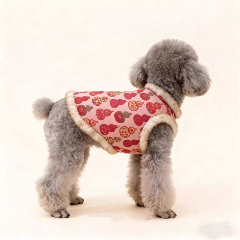 雪纳瑞泰迪比熊宠物衣服拜年服唐装狗狗印花国风加绒加厚保暖红色