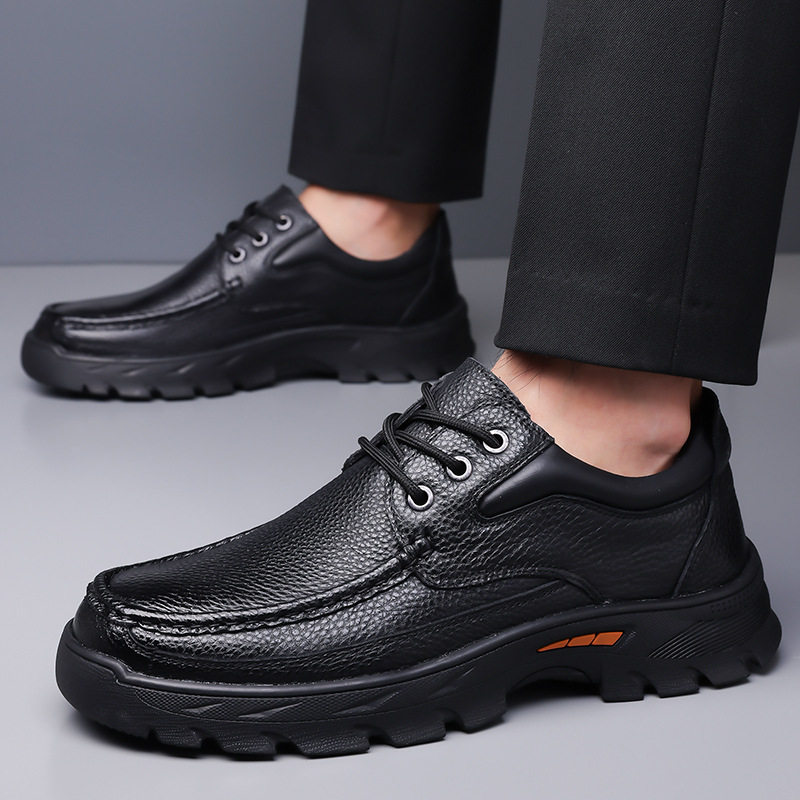捡漏男鞋头层牛皮男士户外休闲皮鞋软面工装鞋中年爸爸鞋