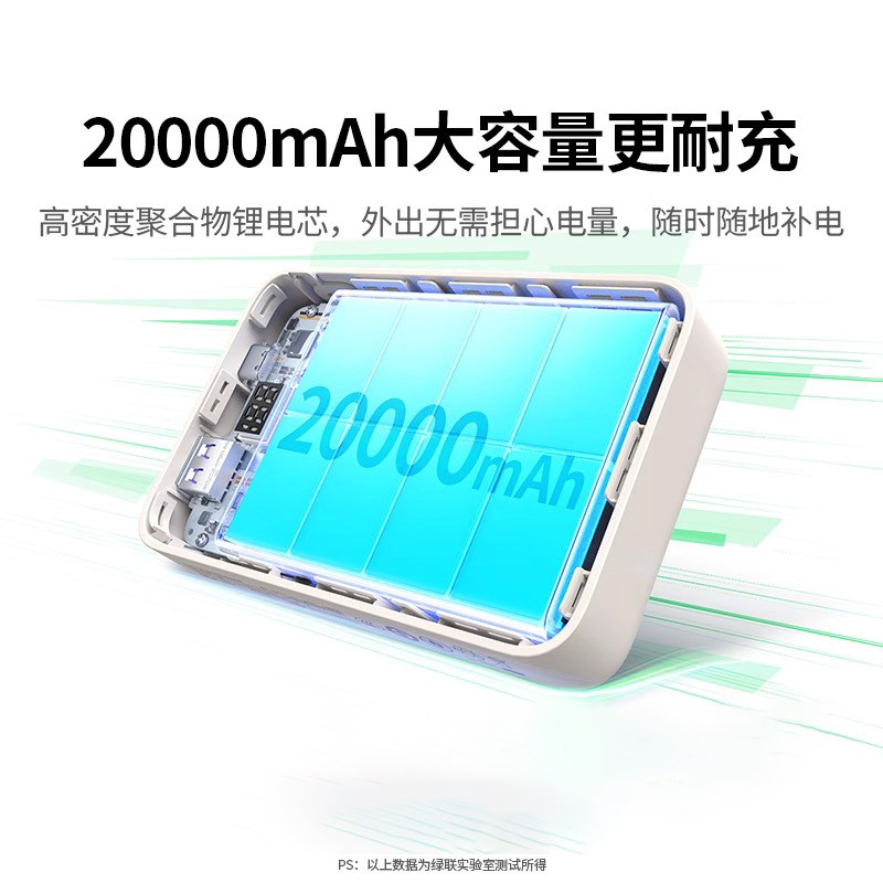【充电宝3C认证可上飞机】绿联2026新款充电宝20000毫安适用iPhone17安卓手机16e超薄便携大容量快充移动电源