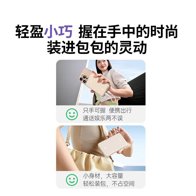 【充电宝3C认证可上飞机】政府补贴15%品胜mini小相机2025新款迷你超薄小巧便携自带线快充适用华为苹果小米
