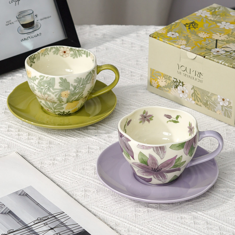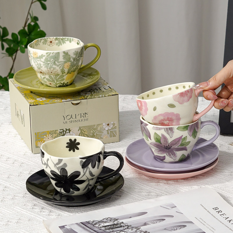 花朵下午茶咖啡杯陶瓷精致马克杯杯碟套装送礼女生浪漫伴手礼小众
