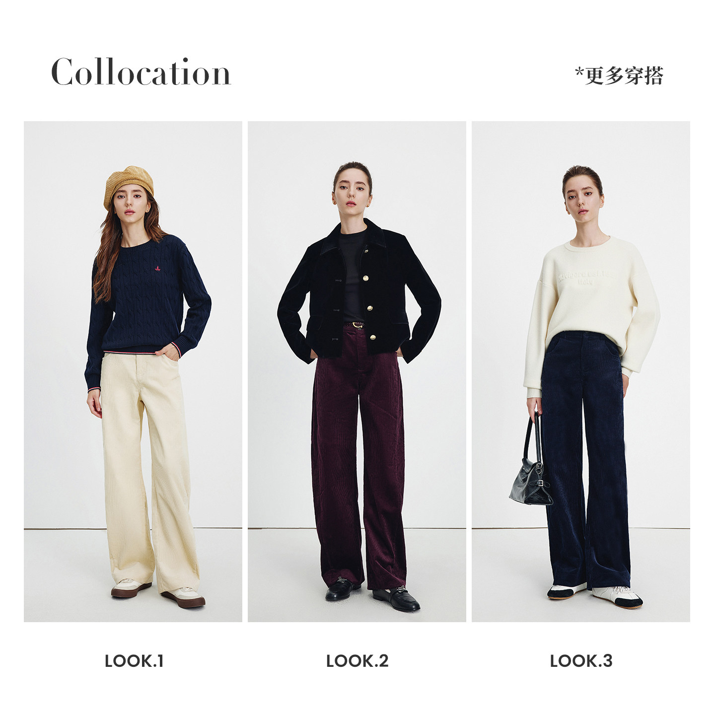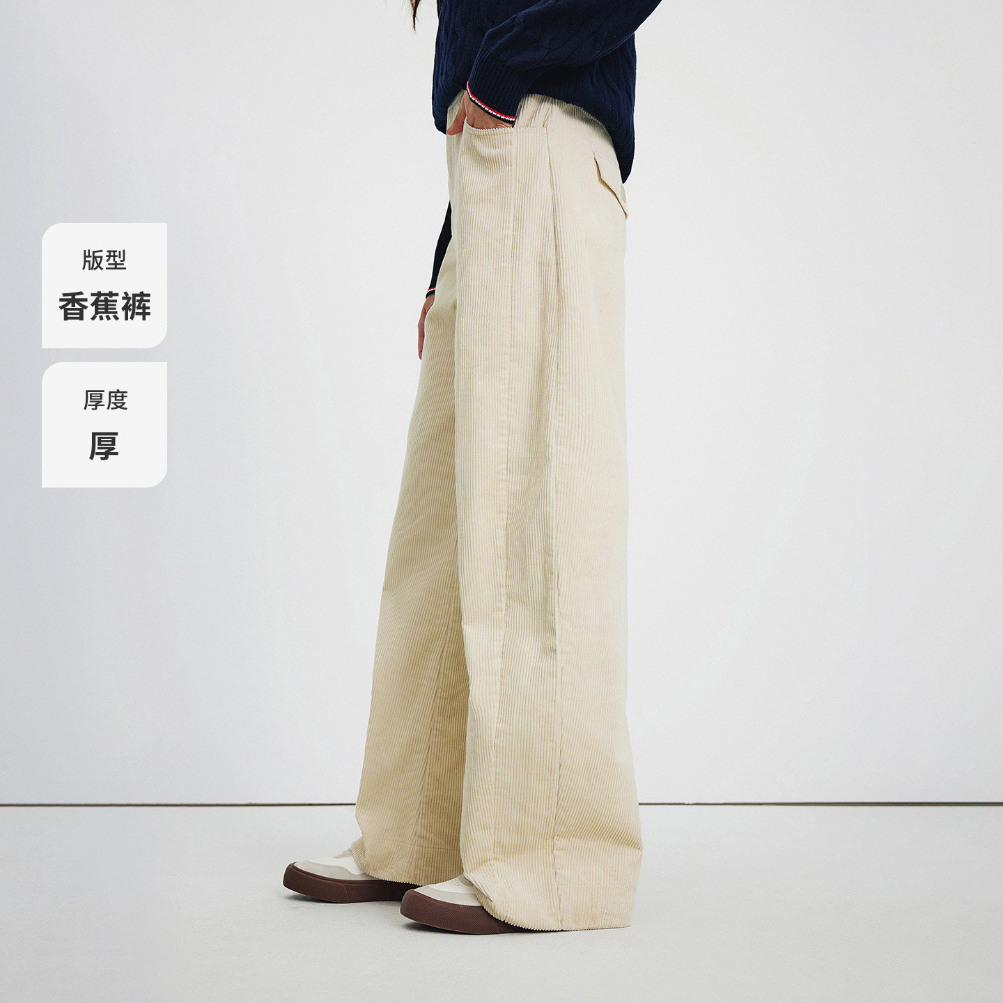 Navigare意大利小帆船厚款灯绒芯休闲裤女2025秋冬新款高腰香蕉裤