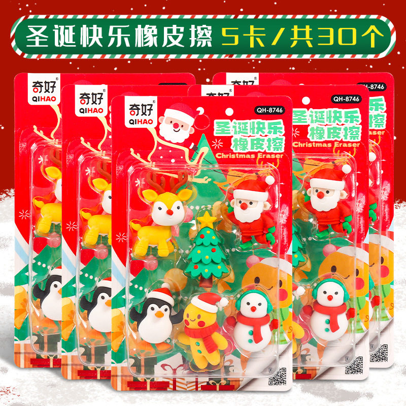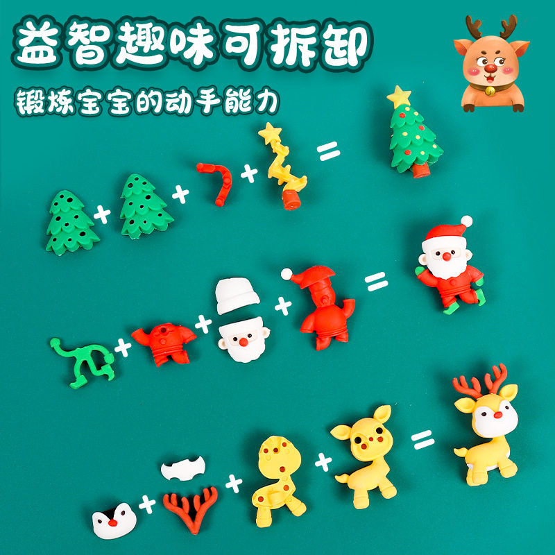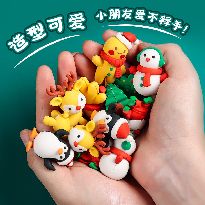 圣诞快乐橡皮擦趣味造型套装高颜值可爱卡通3D立体圣诞公仔橡皮擦得干净不易留痕幼儿园礼物学生专用小礼品