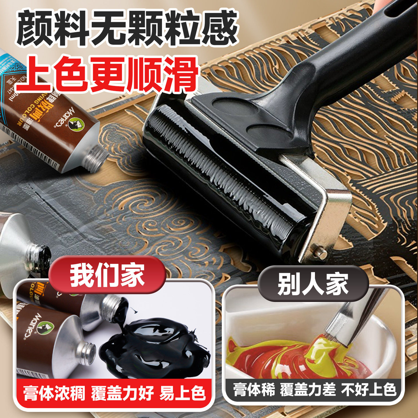 马利版画油墨初学者油画布绘画黑色颜料美术生凹版拓印木刻铜板画白色染料大容量初中生胶板手绘diy油彩材料