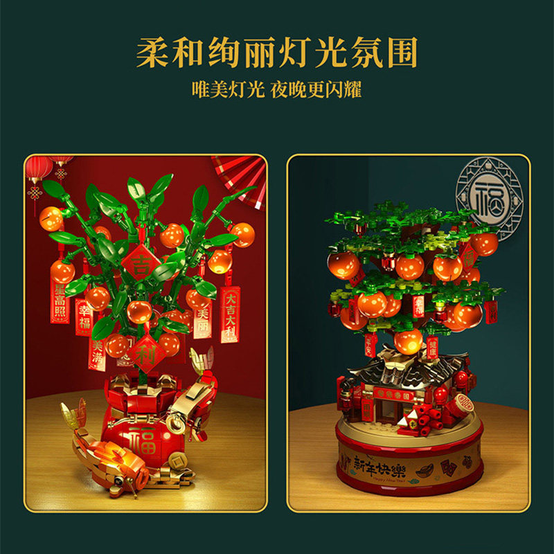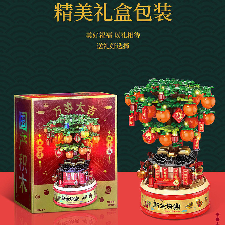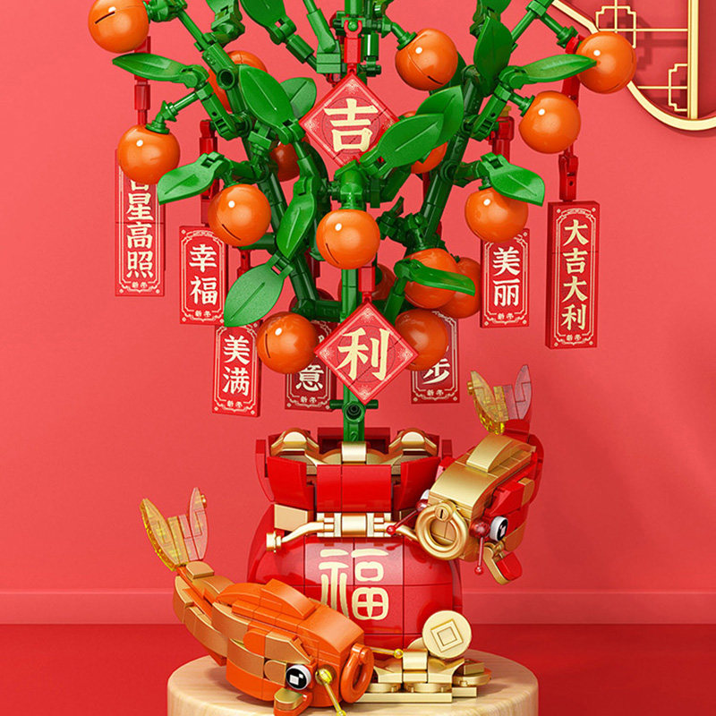 2025新款大吉大利春节系列积木桔子树摆件儿童益智拼装玩具新年礼