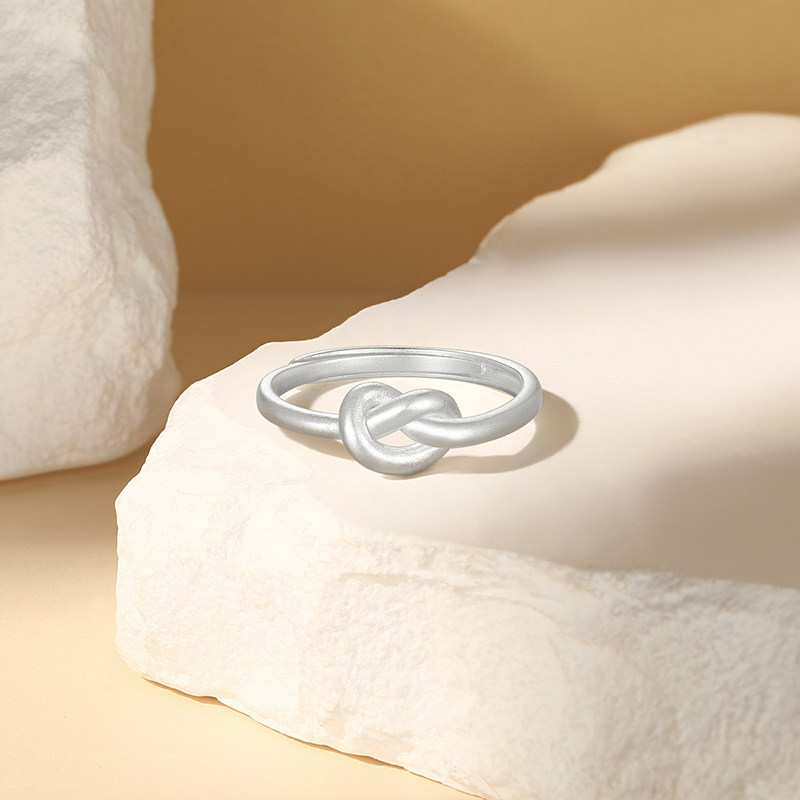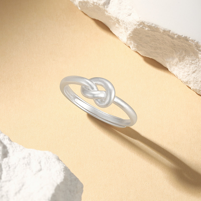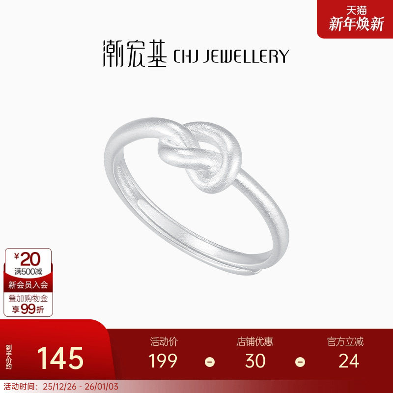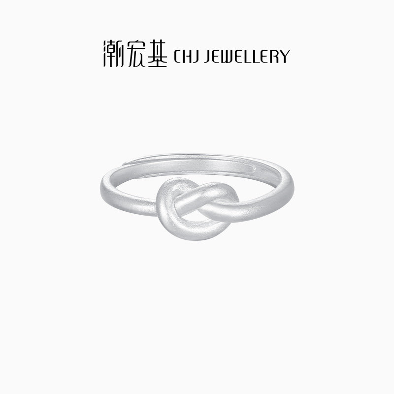 潮宏基至简足银戒指银饰戒圈指环手饰同心结通勤时尚礼物送女友