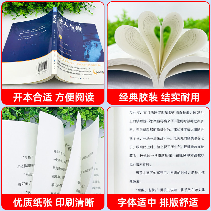 老人与海正版海明威原著人民文学出版社完整无删减经典世界文学名著小说四五六年级小学生初中生高中生学校老师推荐课外阅读书籍