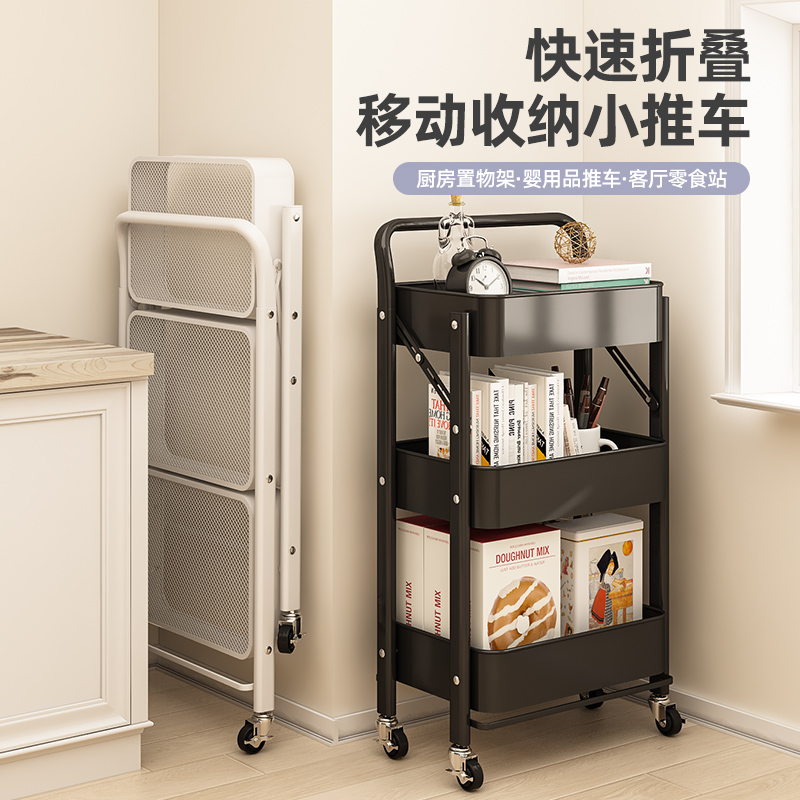 小推车置物架客厅书架落地卧室零食移动可折叠简易书包收纳储物架