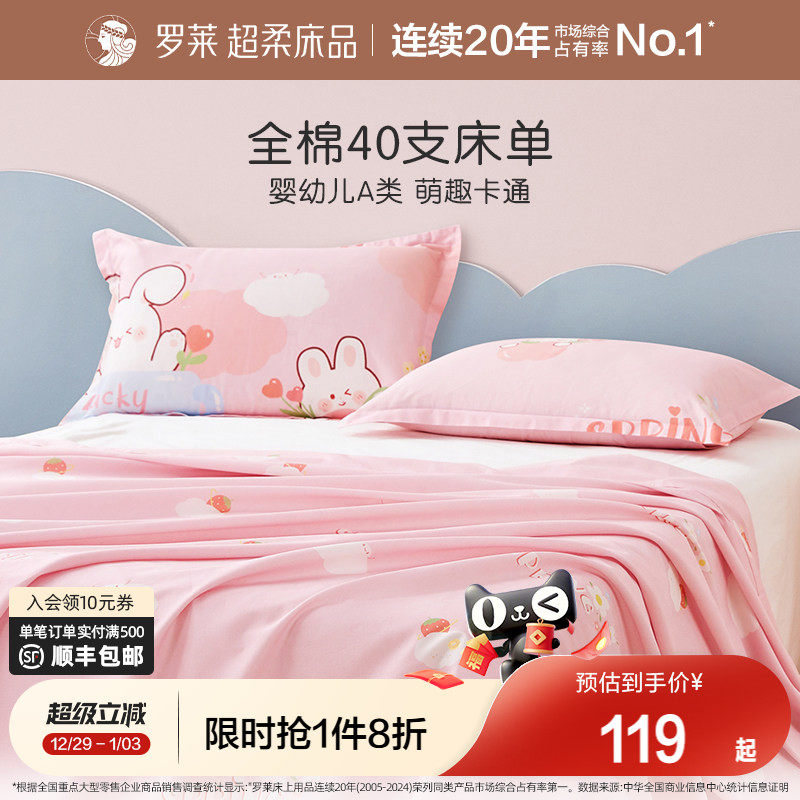 罗莱家纺儿童纯棉男孩女孩学生宿舍全棉拆单件单卖床单床上用品