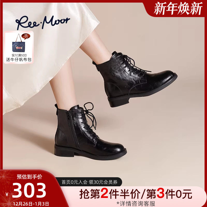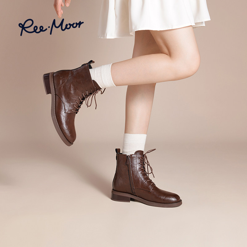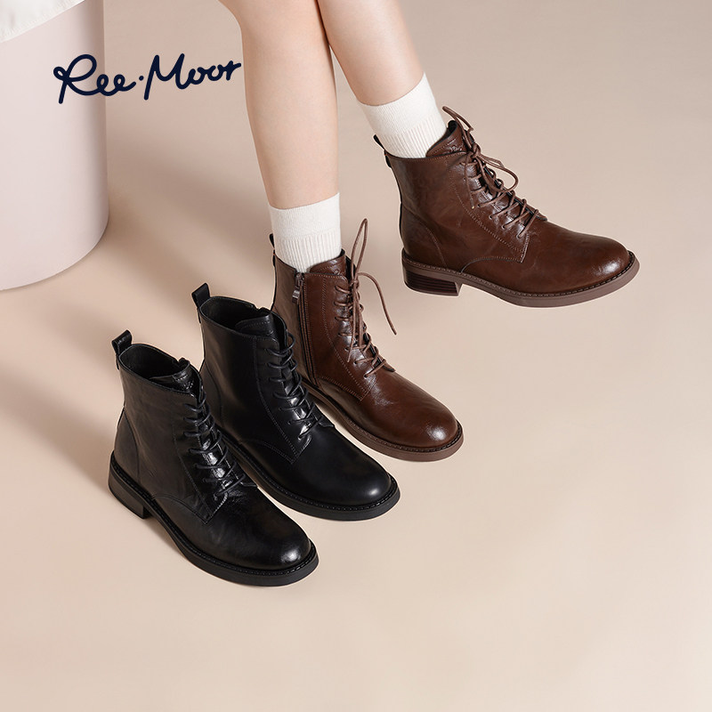 REEMOOR睿慕2025新款百搭马丁靴复古女靴英伦风短靴软弹鞋底