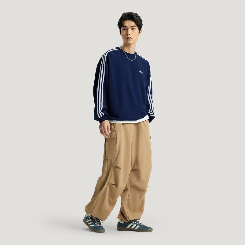 adidas阿迪达斯三叶草三条纹套头衫深蓝色春男篮球圆领卫衣KG3899