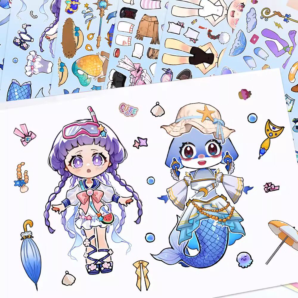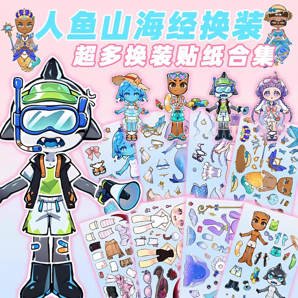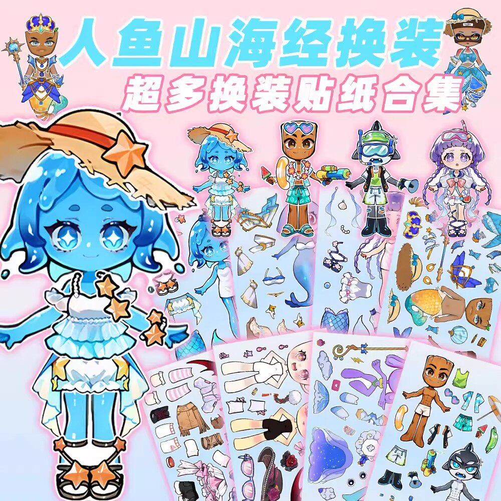 新款【人鱼水母公主】山海经新角色换装贴纸儿童益智女孩创意玩具