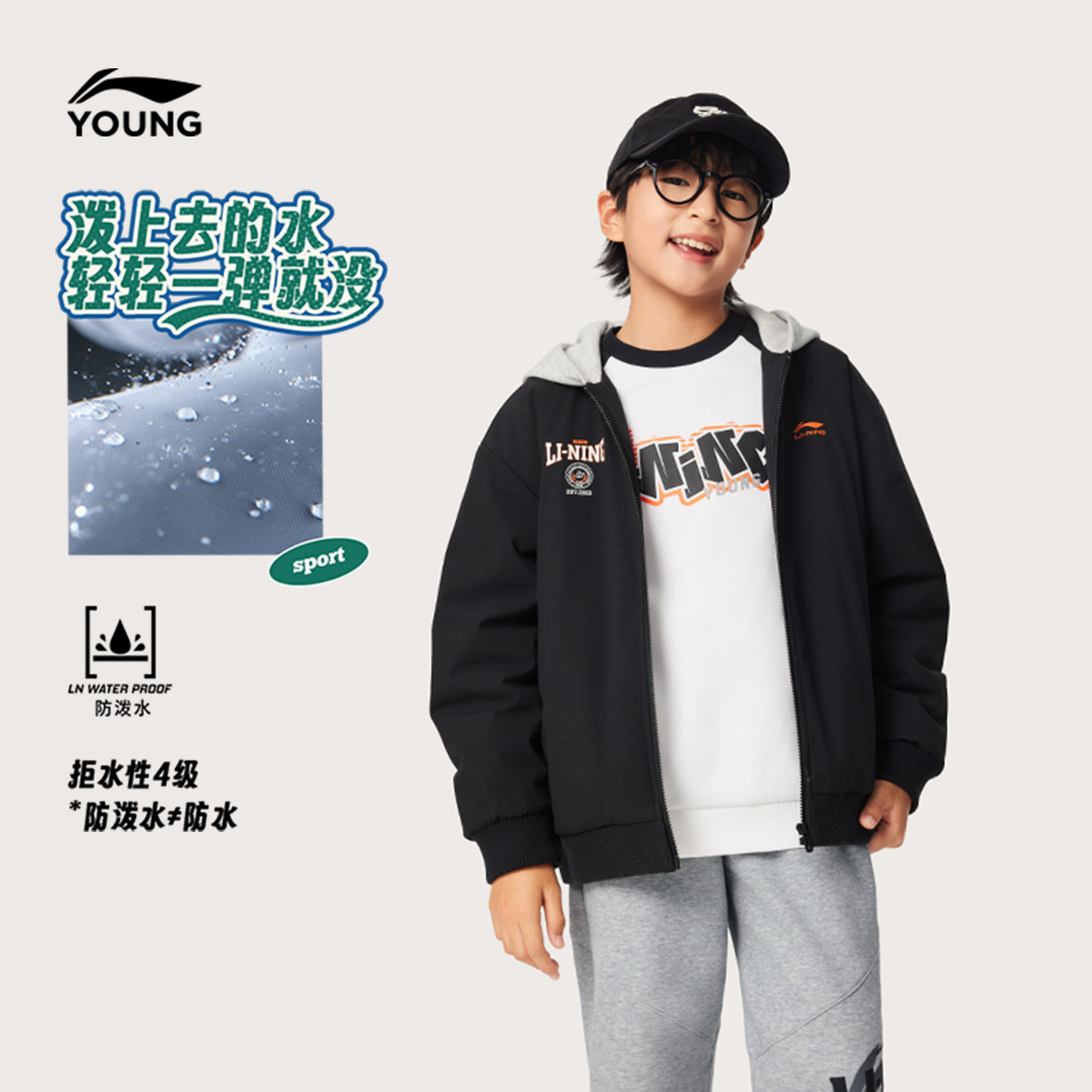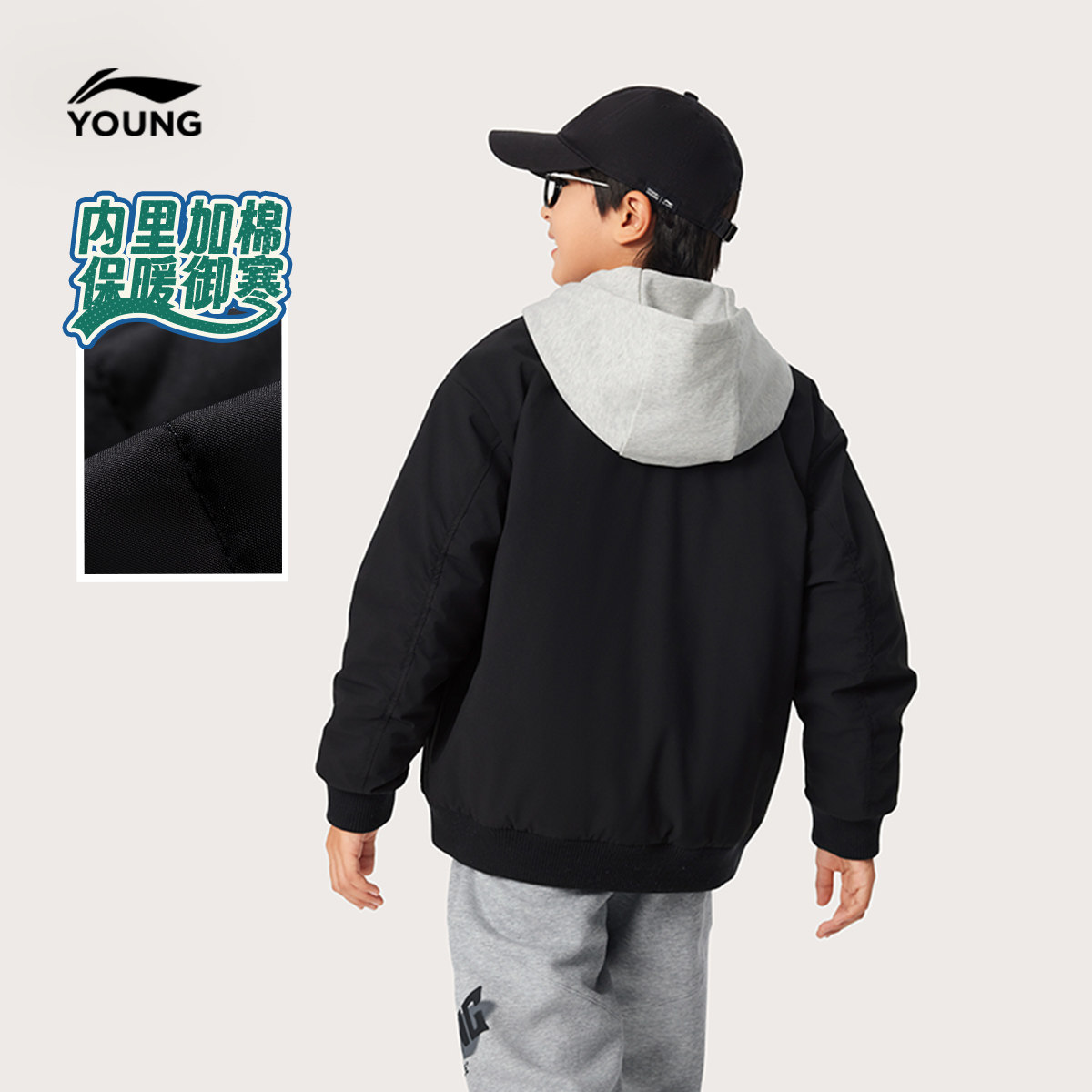 李宁童装短款短棉服男大童25新款运动生活系列宽松秋冬休闲童装