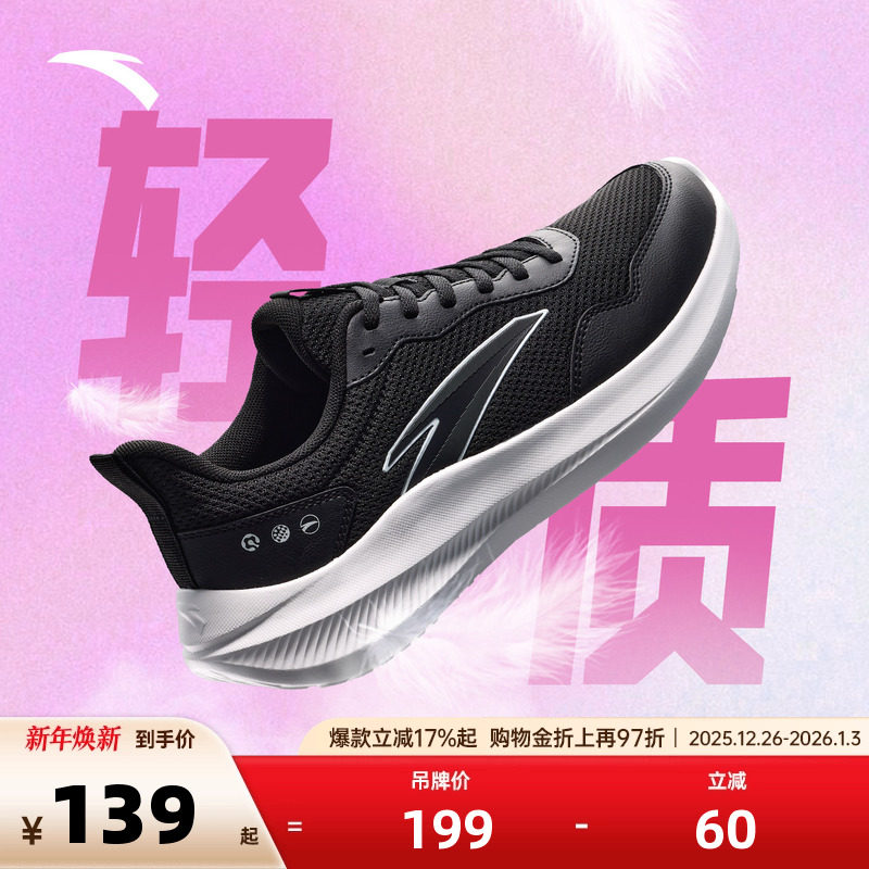安踏叶子6丨轻质软底防泼水跑步鞋女鞋轻便耐磨运动鞋有氧慢跑鞋