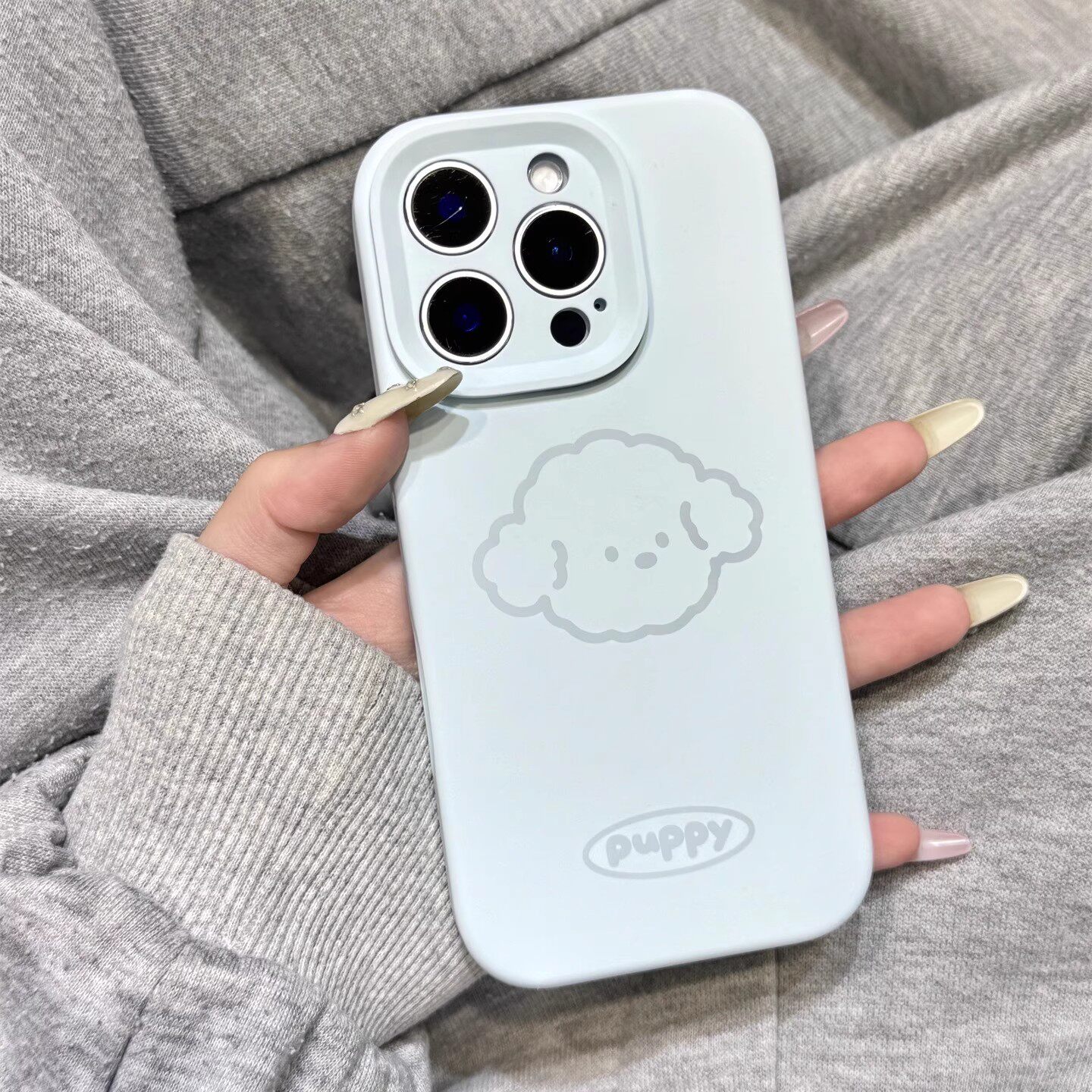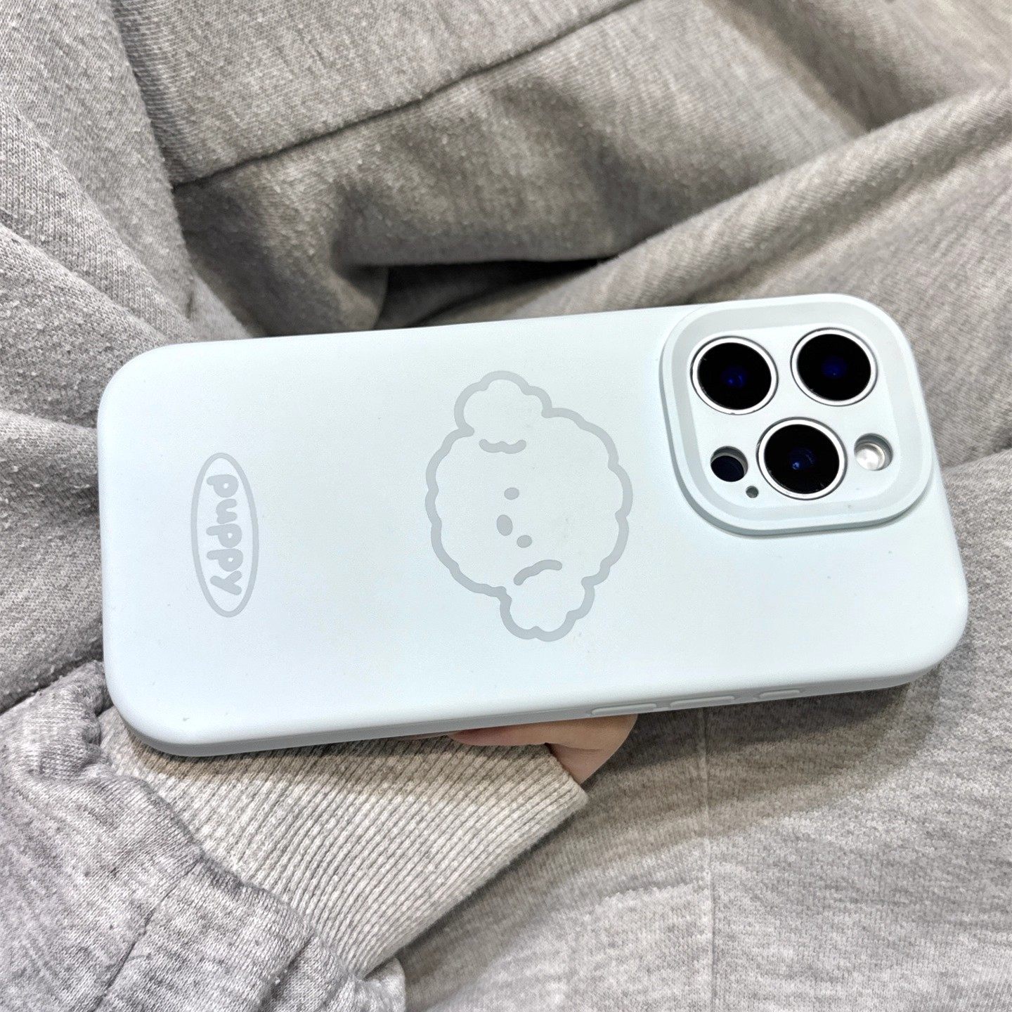 新天蓝色线条狗狗头像磨砂液态硅胶适用于iphone17promax苹果16手机壳15新款14pro女13可爱12pm全包防摔软壳
