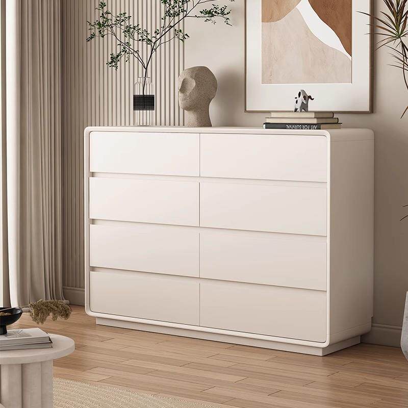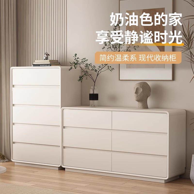 实木斗柜奶油风卧室床尾柜大容量客厅靠墙简约现代白色五斗储物柜