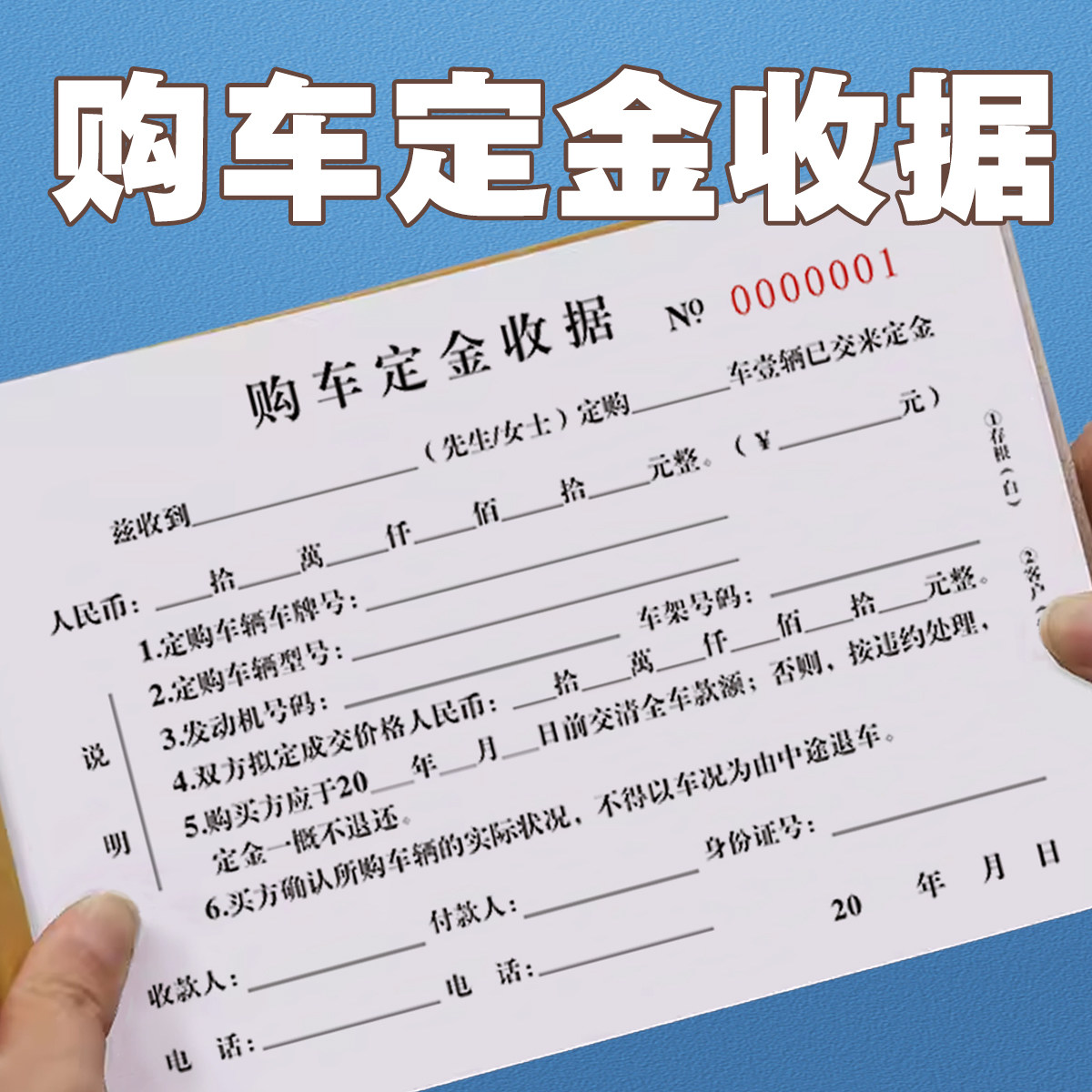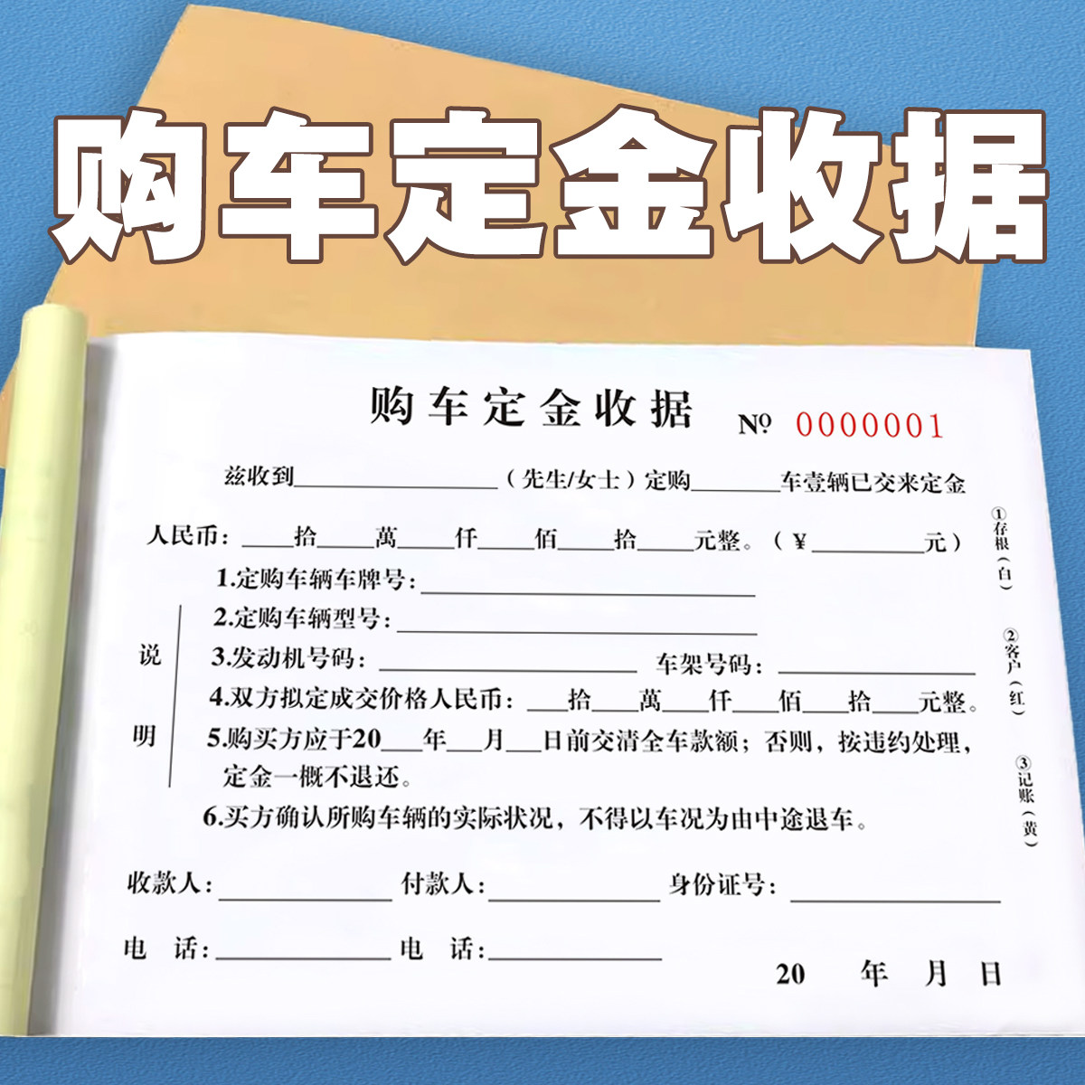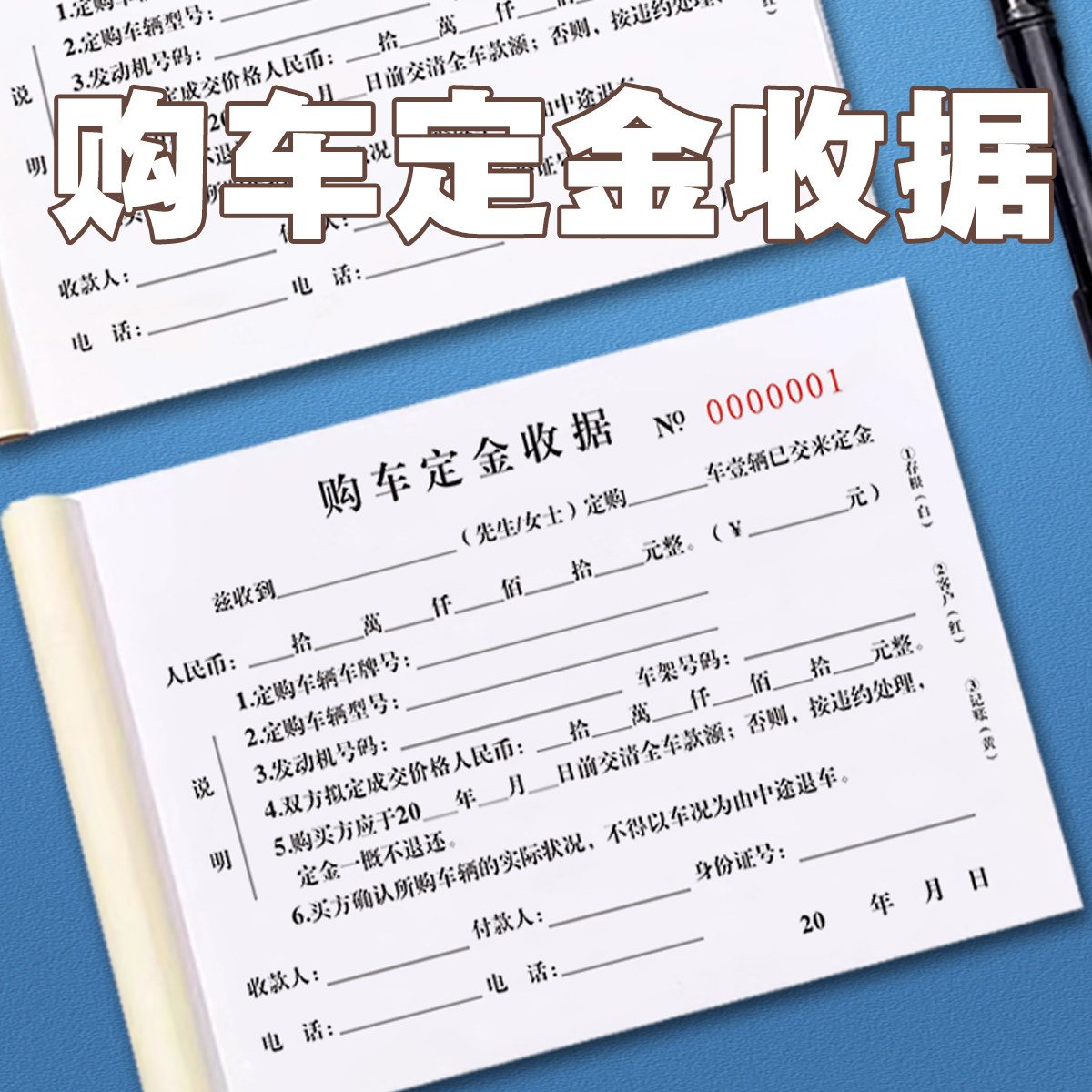 汽车销售购车定金收据单二联三联定金收据新车销售合同结算单据