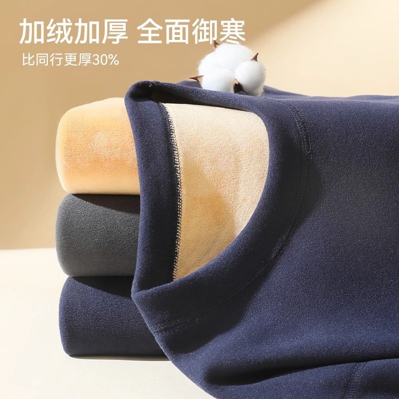 中高领保暖内衣男士加绒加厚套装大码德暖绒秋衣秋裤打底棉毛衫冬