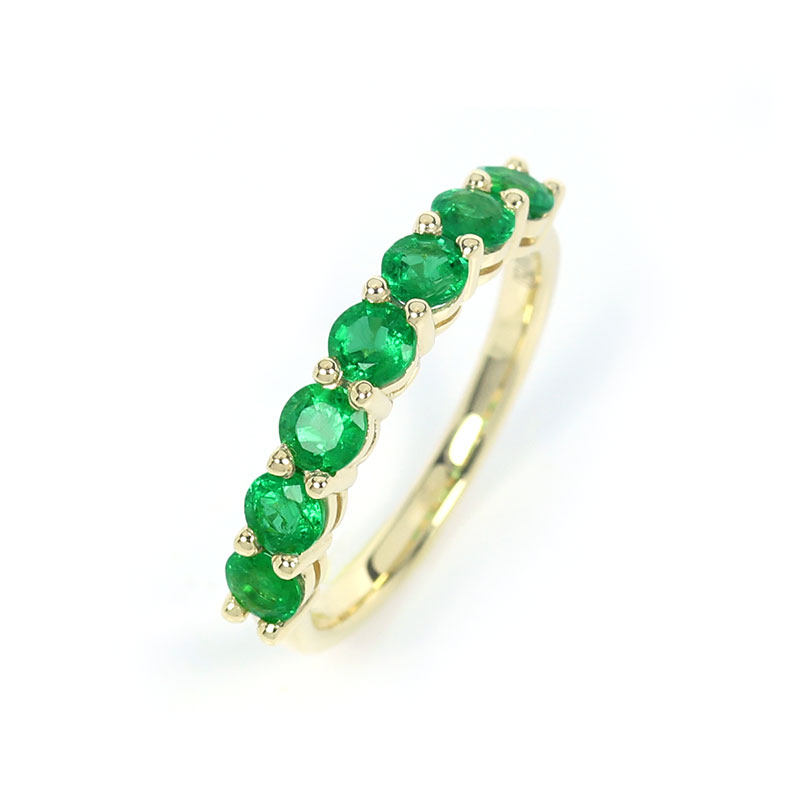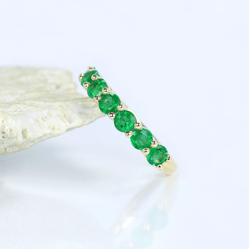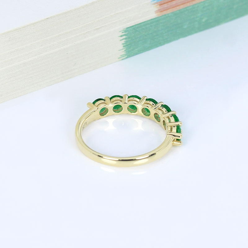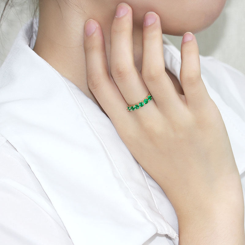 18K黄金天然赞比亚祖母绿排戒 微油绿色宝石戒指尾戒叠戴女款正品