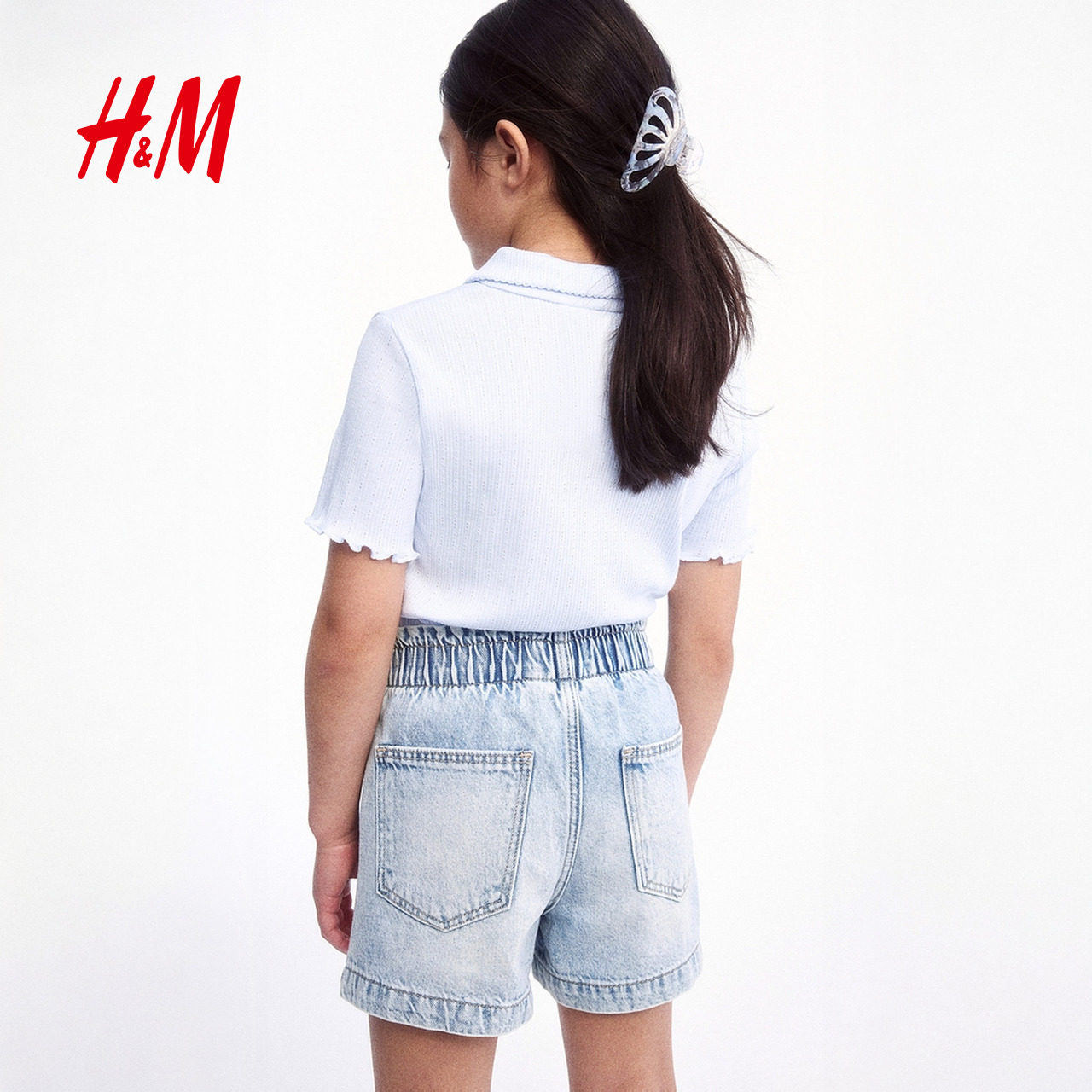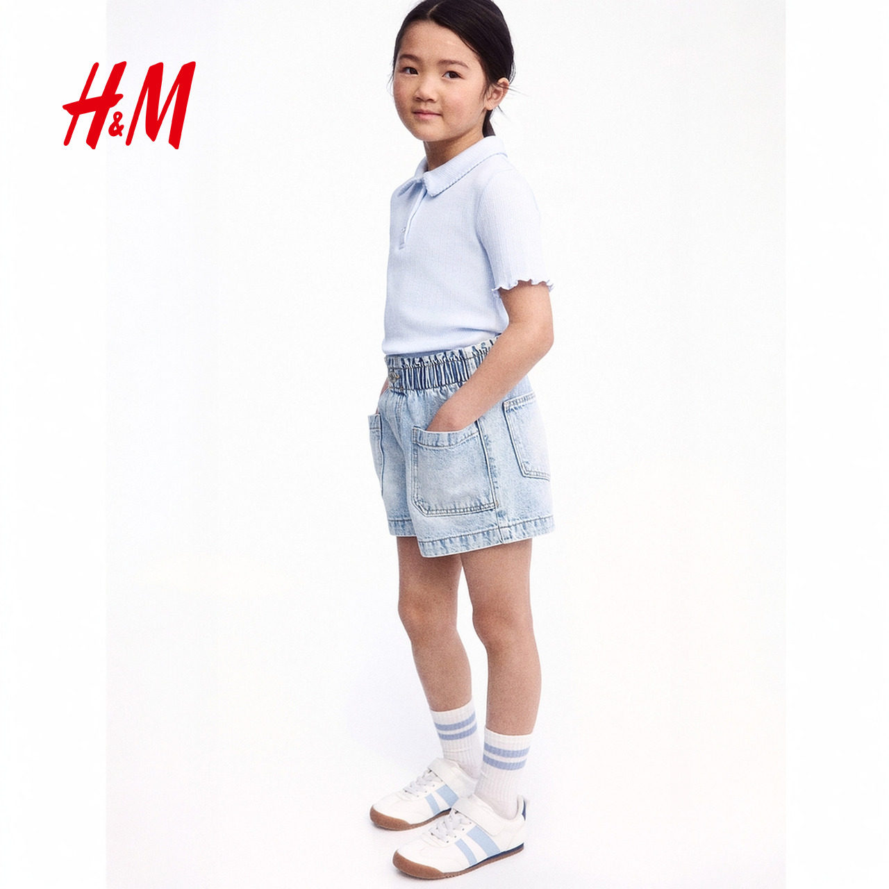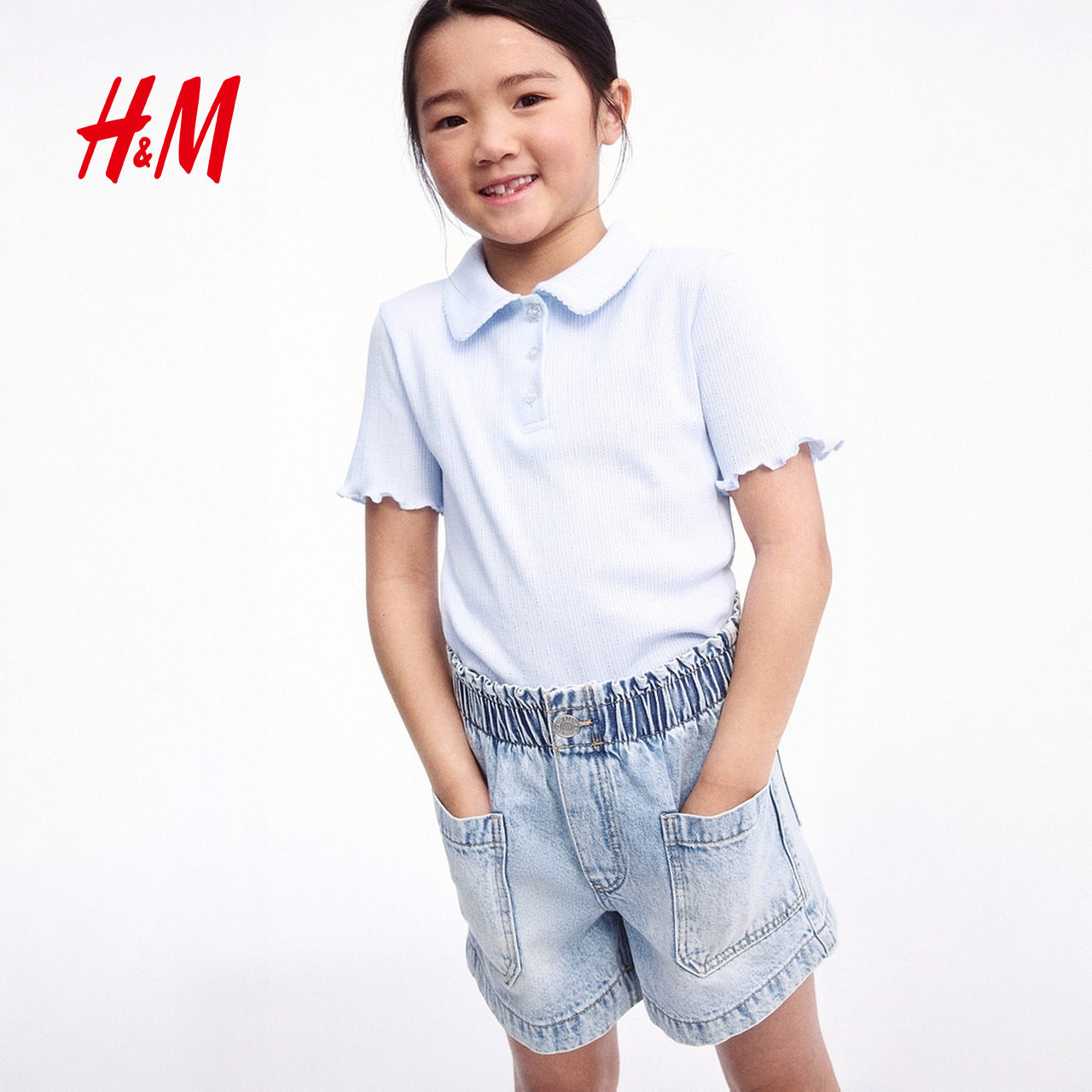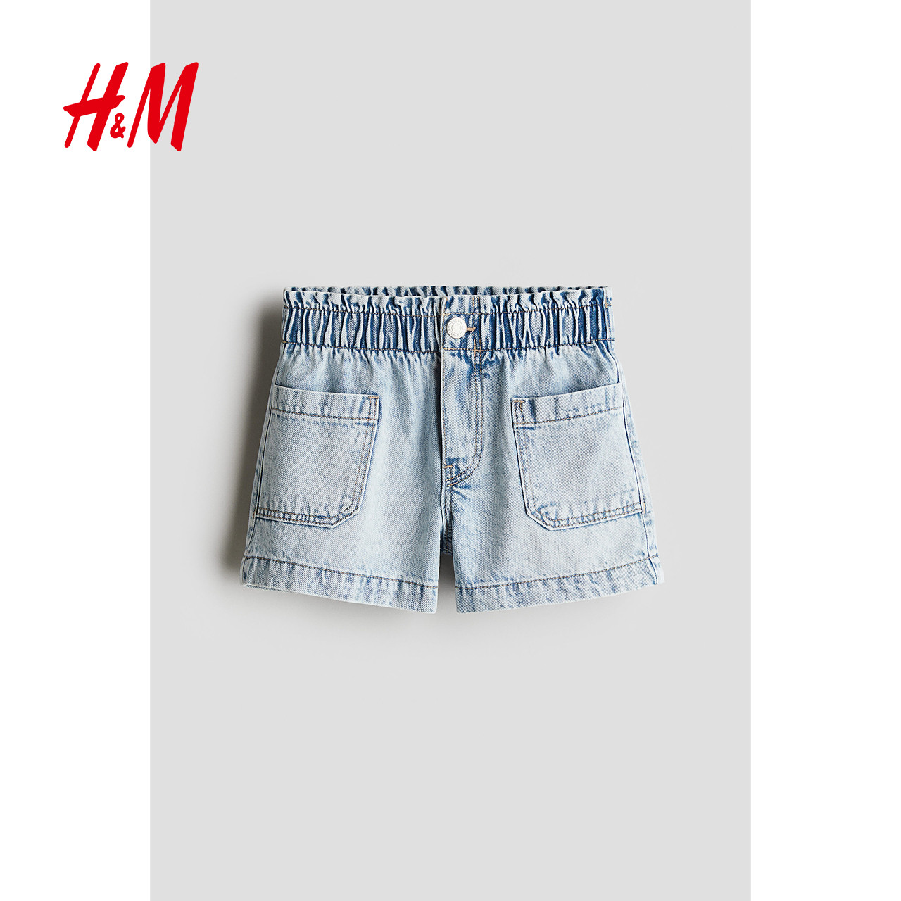 HM童装儿童女童牛仔裤冬柔软可爱水洗棉质宽松款牛仔短裤1115791