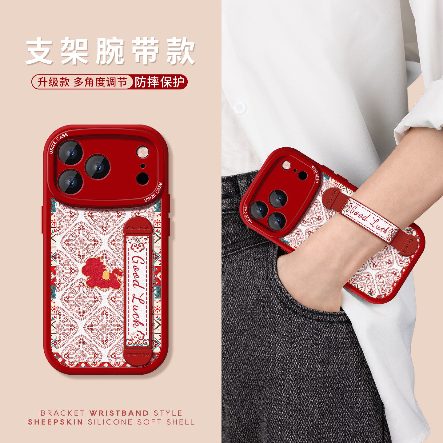 适用苹果16Promax手机壳17新款iphone15防摔伸缩腕带支架13全包创意air民族风小马14Pro可调节情侣12个性11