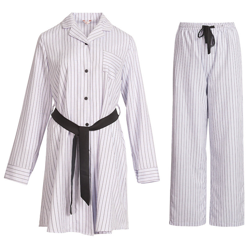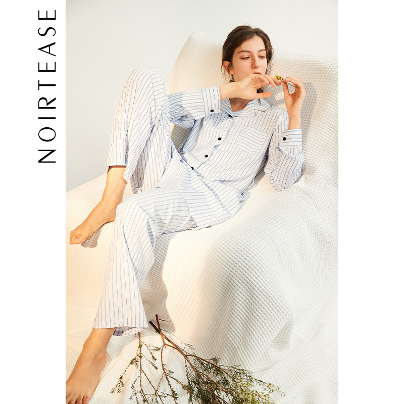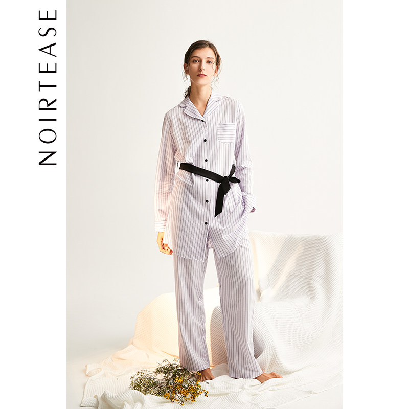 NoirTease奈黎诗春秋薄款女士可外穿天丝亚麻长袖睡衣家居服套装