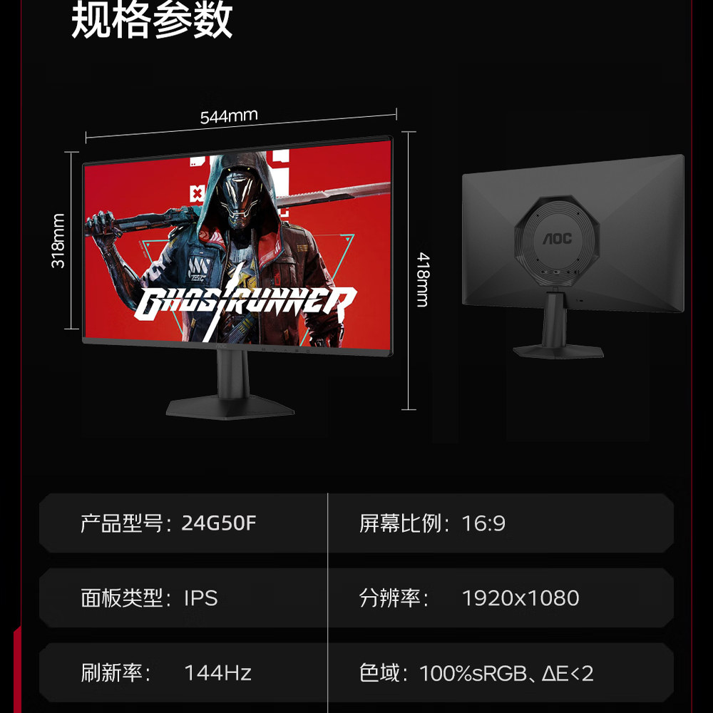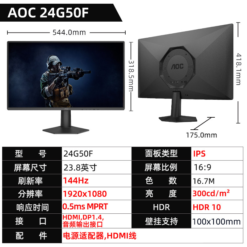 AOC 24寸144Hz-180Hz显示器27寸2K赛事游戏外接笔记本屏幕24G50F