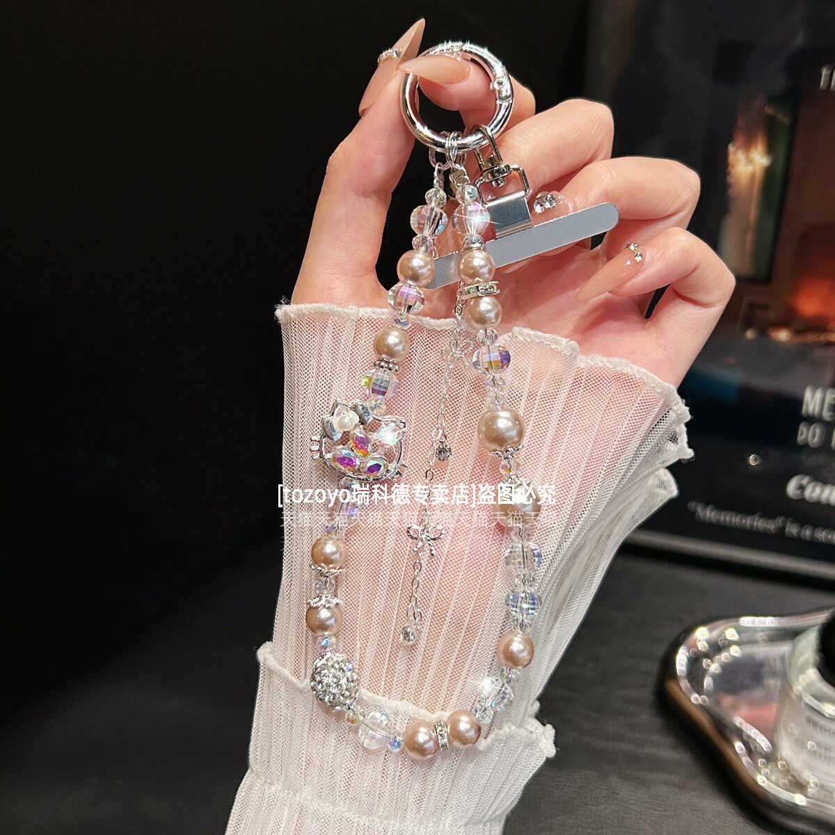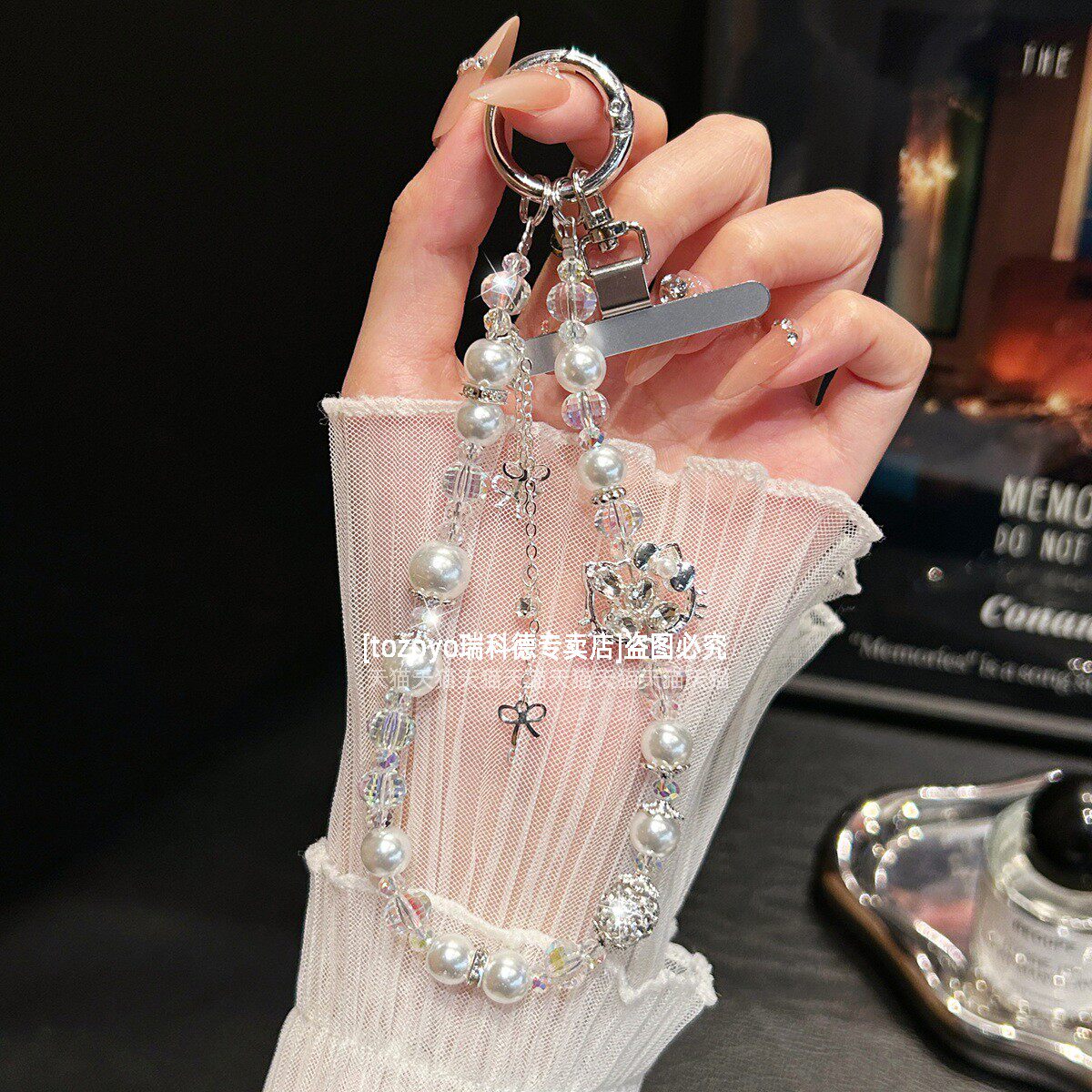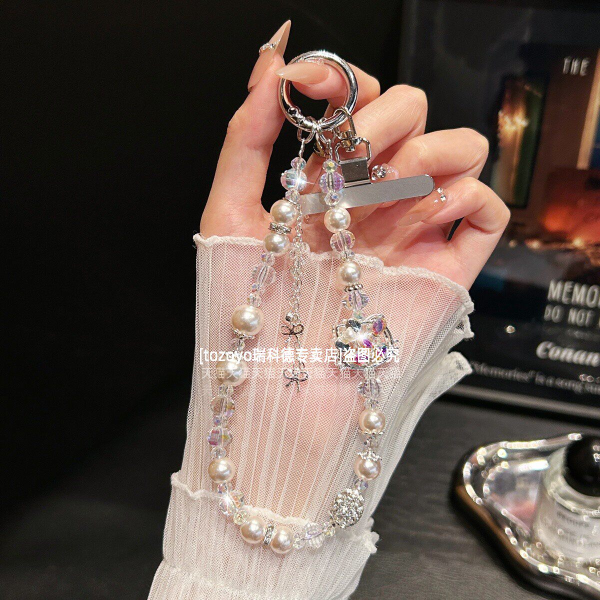 超仙绝美手机链精致彩钻猫咪链条高级质感珍珠水晶挂链手腕挂绳手链好看蝴蝶结流苏吊坠女轻奢挂饰包包串珠壳