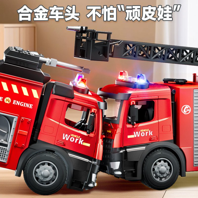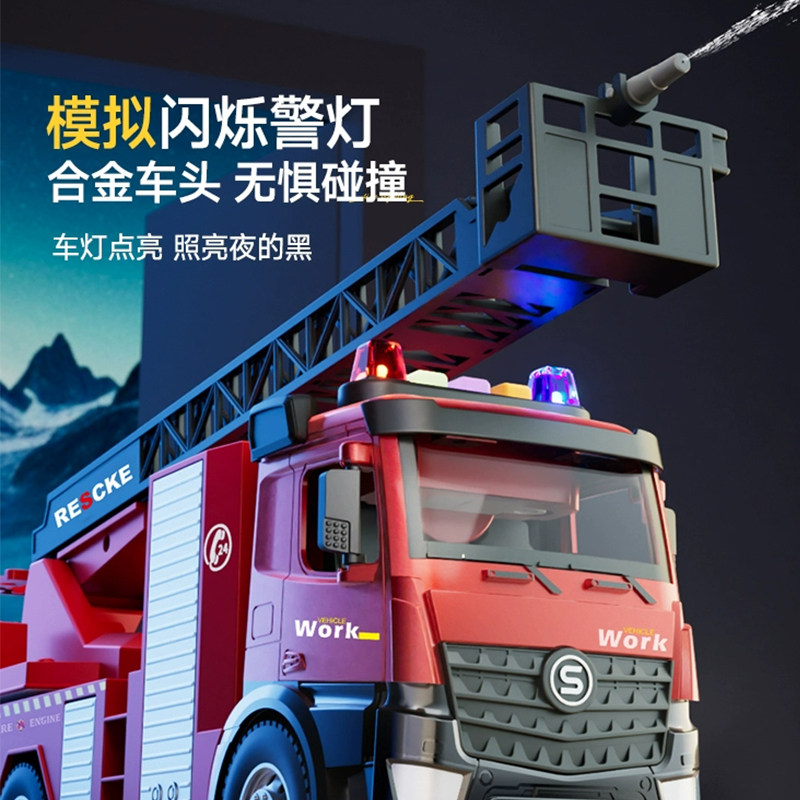 新年儿童云梯消防车玩具车男孩大号合金模型可喷水多功能汽车礼物