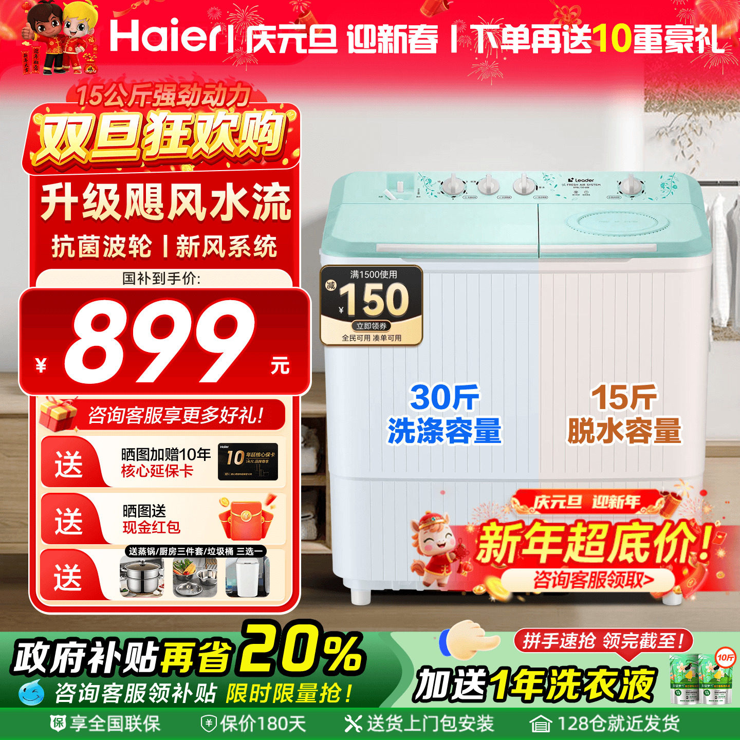 海尔洗衣机家用10KG15公斤超大容量半自动双桶双缸波轮统帅出租用