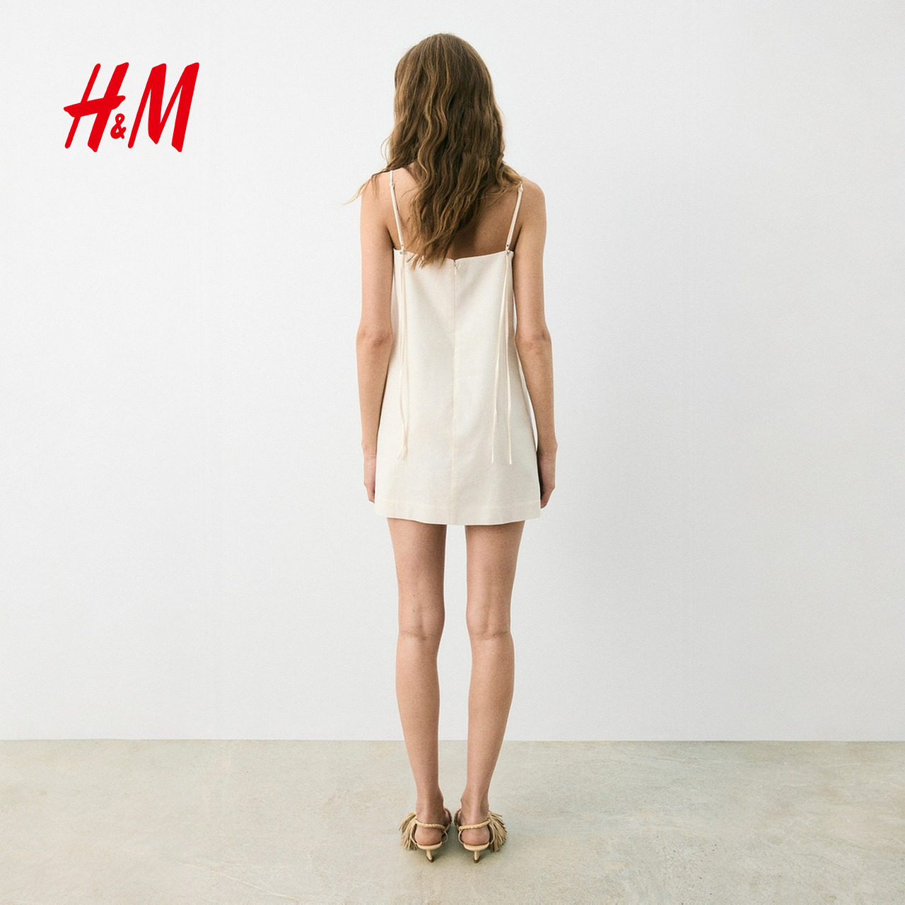 HM2025年冬季新款女装时尚休闲亚麻混纺吊带连衣裙1296803