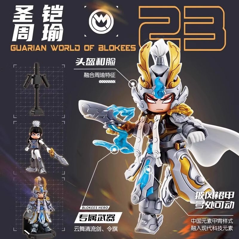 布鲁可积木人英雄无限经典版拼装吕布手办孙悟空关羽积木玩具