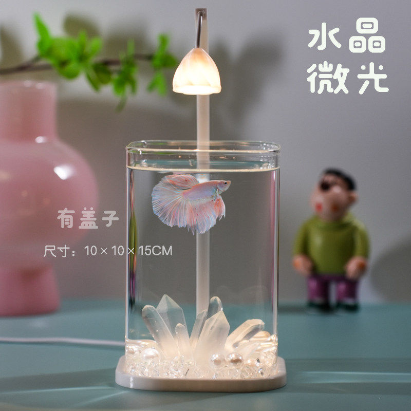 2025新款斗鱼专用隔离双缸客厅办公室造景摆件夜灯小型鱼缸桌面