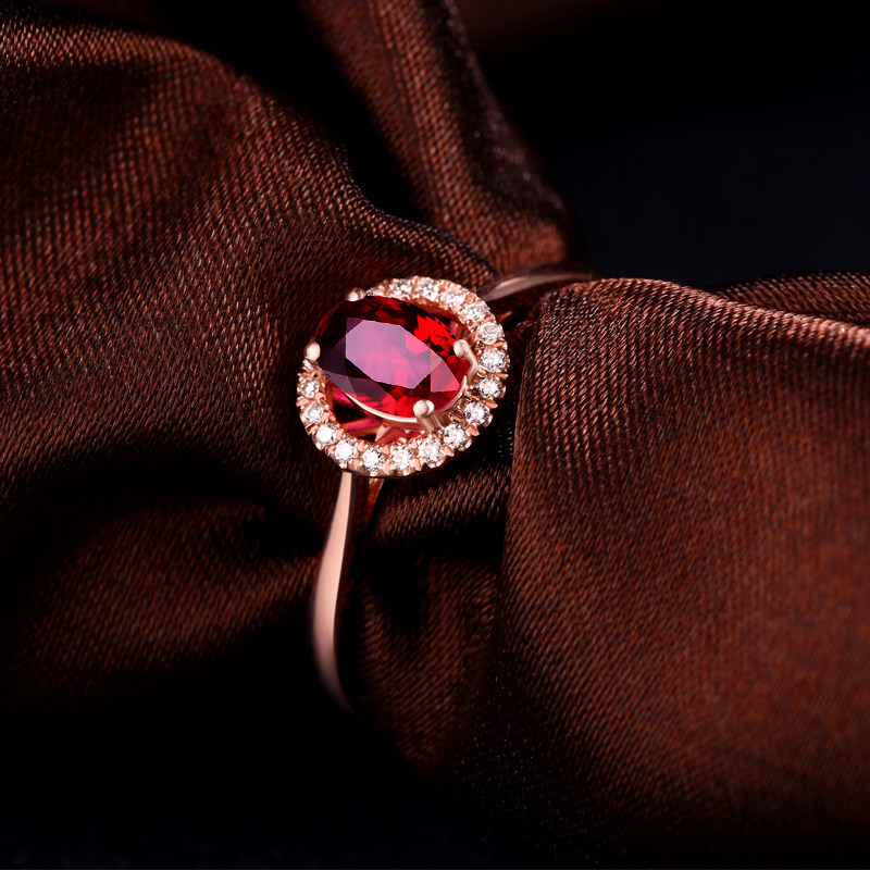蜜安琪 1.0克拉天然缅甸红宝石戒指 18K玫瑰金镶嵌彩色宝石珠宝