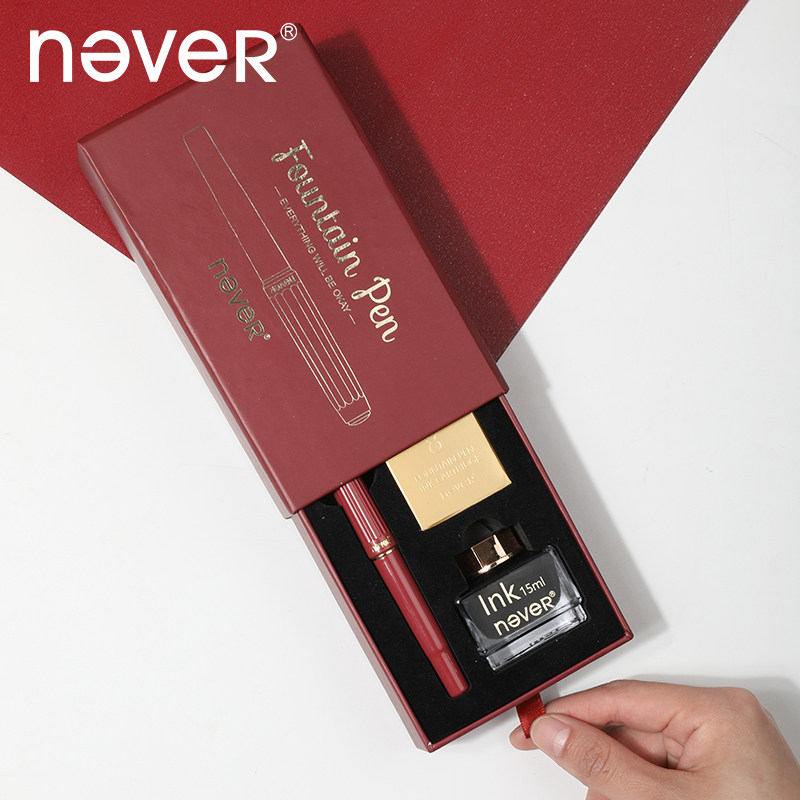 【圣诞礼】never钢笔明尖文艺复古高档精致礼盒装成人商务办公书写学生用练字墨水笔生日礼物送老师