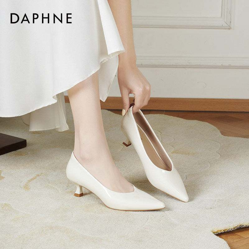 达芙妮裸色尖头高跟鞋女2026新款通勤工作鞋女鞋细跟浅口单鞋子女