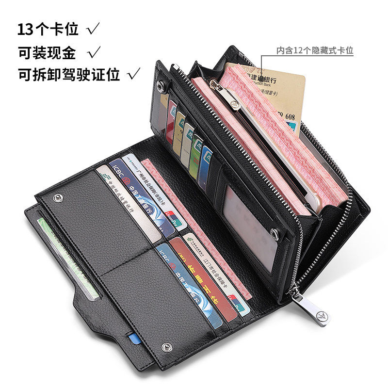 2025新款长款双拉链钱包男士护照皮夹软皮大容量真皮质感手包商务