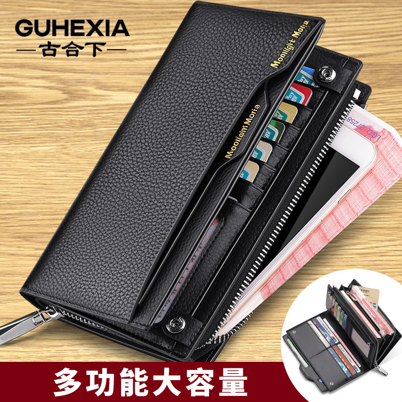 GUHEXIA男士钱包新款长款多卡位驾驶证手拿包卡包皮夹女证件零钱