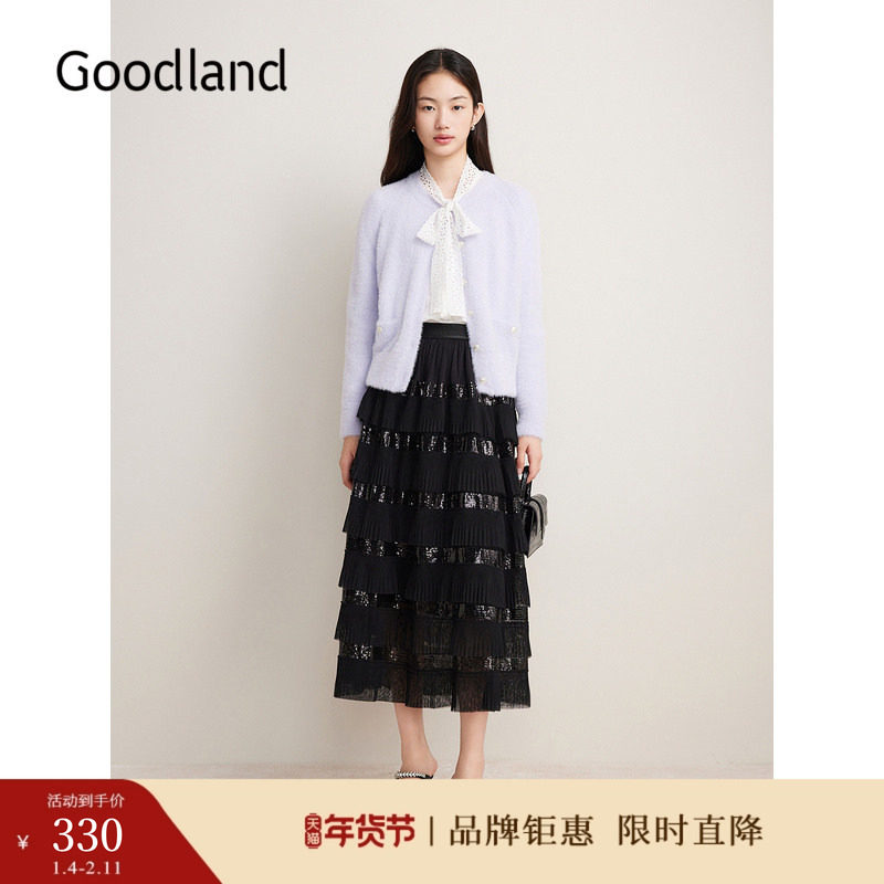Goodland美地秋季仿貂绒小香风毛针织开衫薄外套