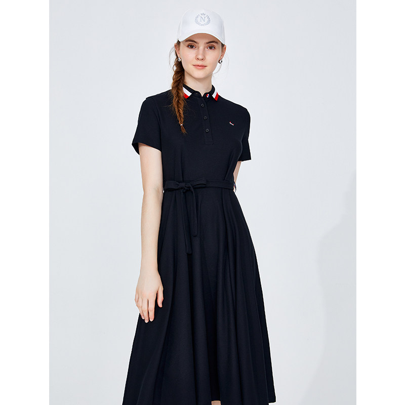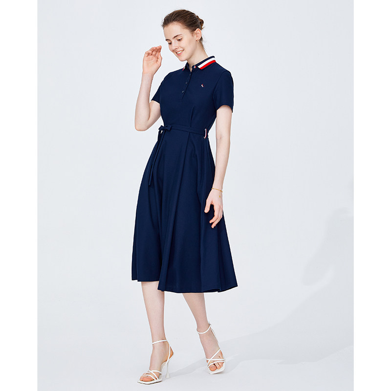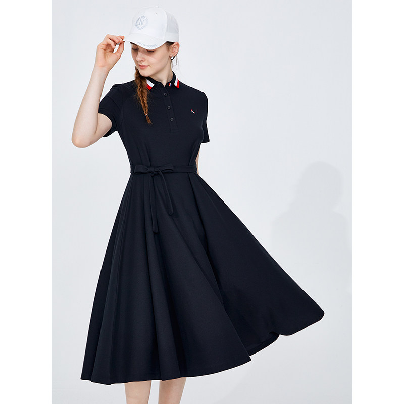 Navigare意大利小帆船显瘦Polo连衣裙女士A字裙休闲短袖裙子