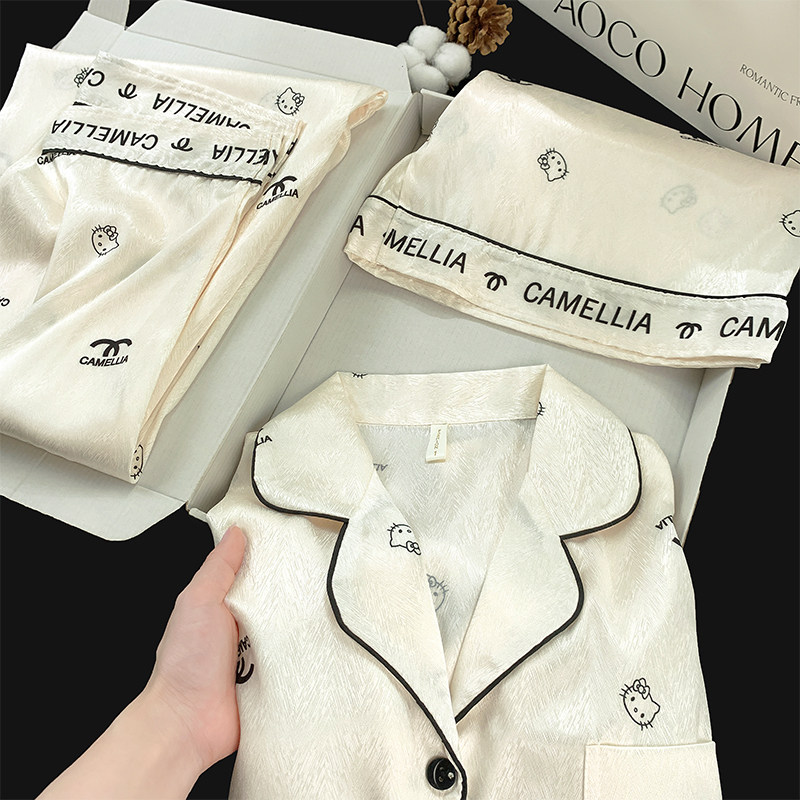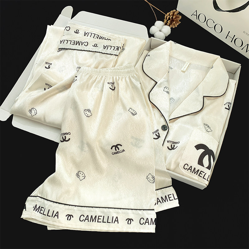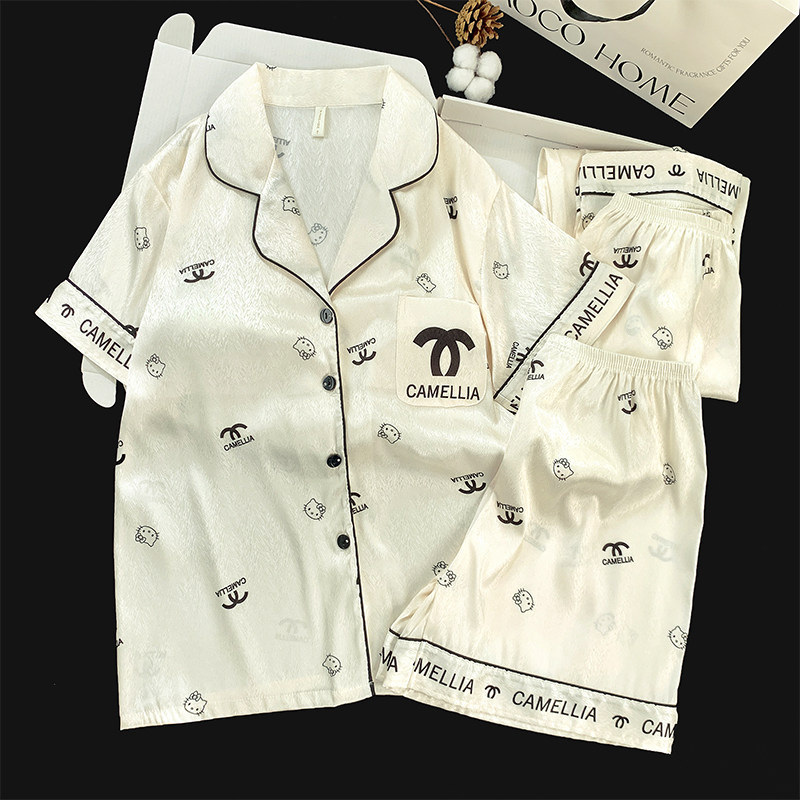 带胸垫睡衣女款夏季三件套冰丝卡通甜美2025新款夏天家居服可外穿