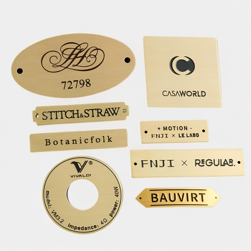 高端黄铜紫铜牌腐蚀拉丝工艺数字桌号牌LOGO商标二维码标签牌定制