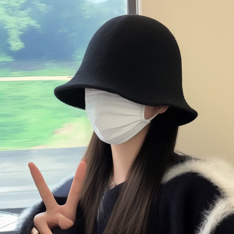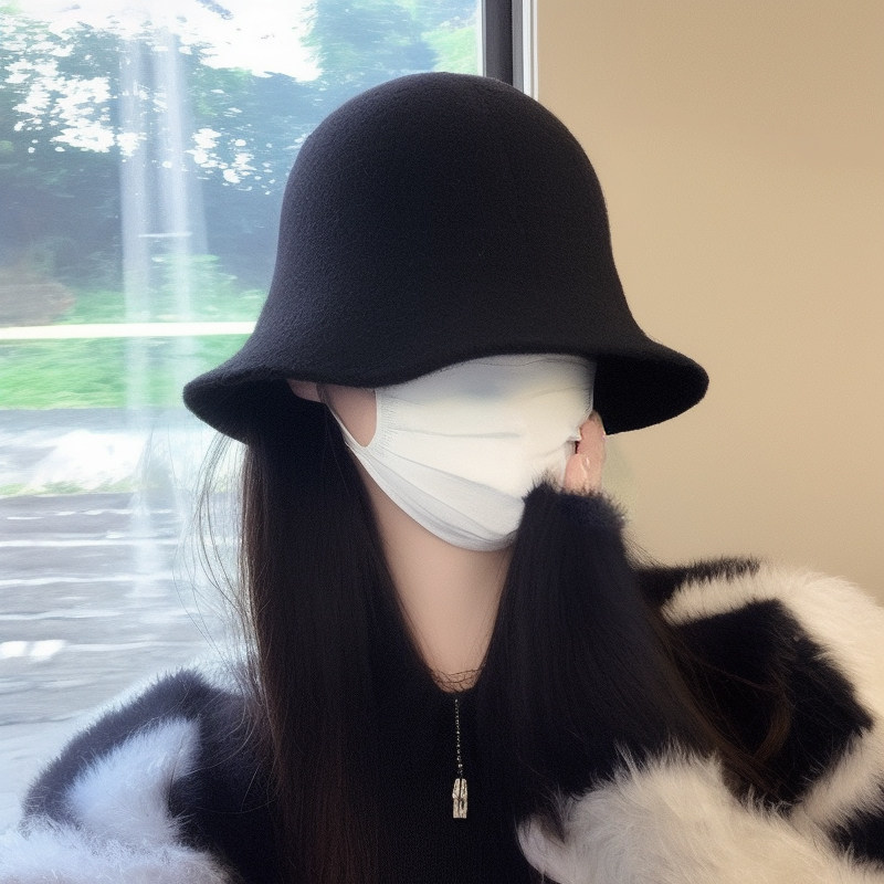 大头围日系百搭渔夫帽女秋冬复古遮脸水桶帽保暖毛呢盆帽显脸小