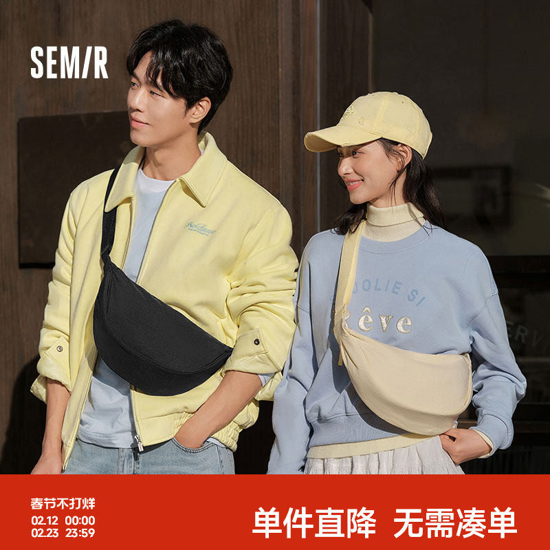 森马斜挎包男女饺子包纯色简约通勤胸包时尚休闲风背包情侣斜挎包